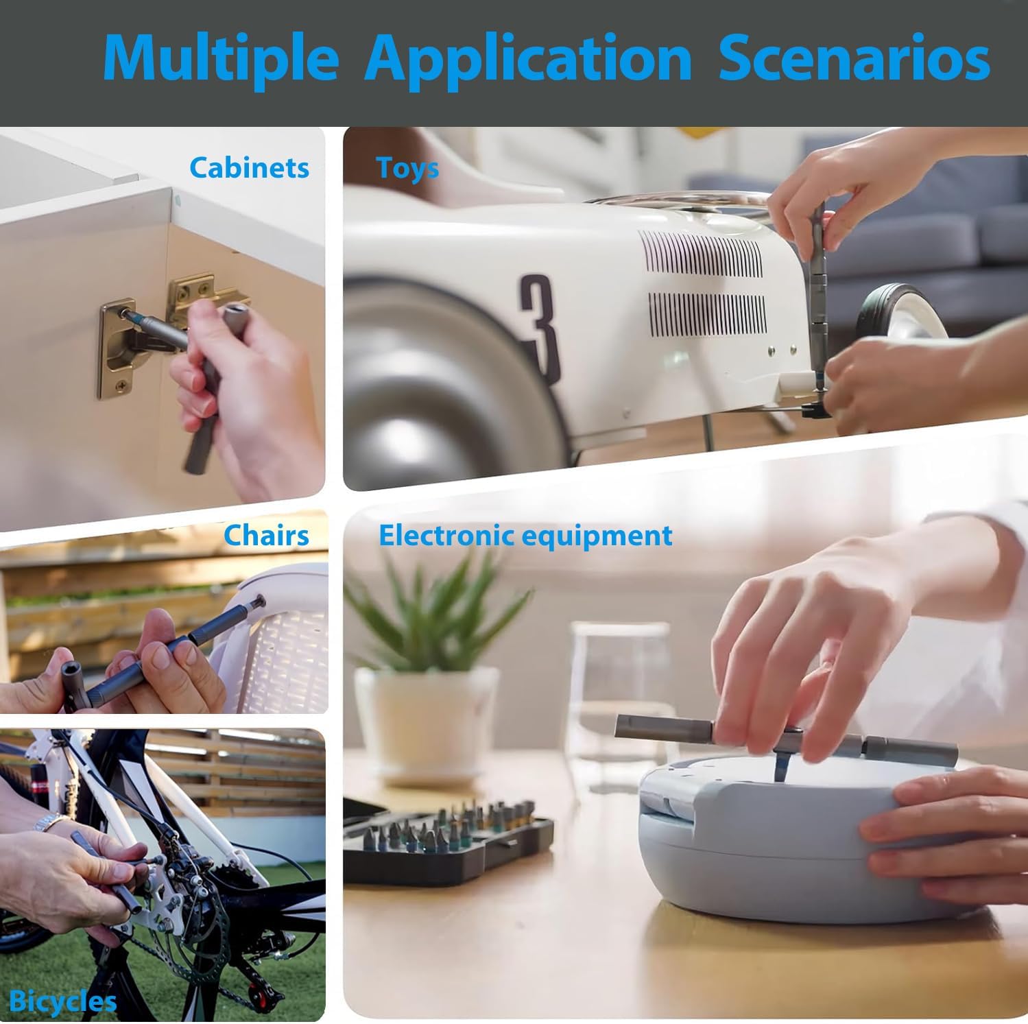【Multi-Functional Handle】The multi-functional handle serves as both a screwdriver and a small wrench, offering seamless switching and multiple functions for versatile applications. It can efficiently handle various tasks, including home appliance repairs, power tool usage, and automotive maintenance. Additionally, the handle is equipped with a powerful magnet that securely holds the hex bits, and a built-in magnetization chamber adds magnetism to the bits anytime, ensuring convenient use and portability