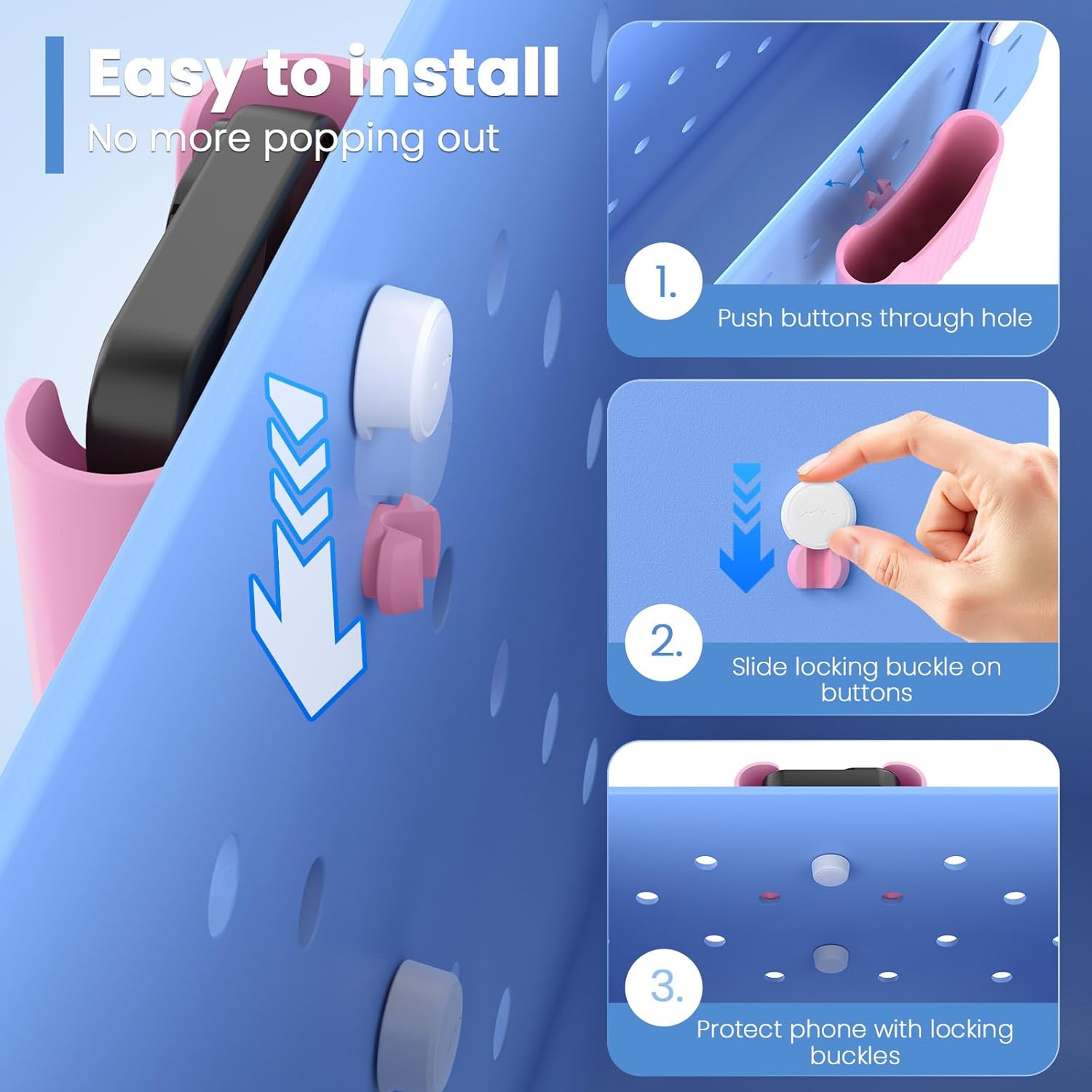 【 Effortless Installation 】Install in seconds! Push button into bogg bag, slide locking buckle into button. Quick, secure, stylish. No more struggling with ugly, hard - to - attach Velcro straps. Simple design, maximum phone safety, minimal hassle