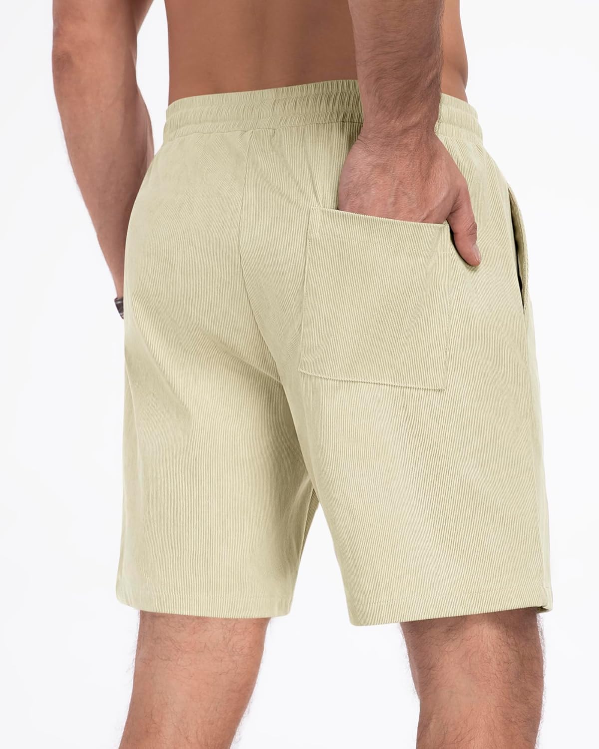 DOWMQ Men's Corduroy Shorts Casual Elastic Drawstring Lightweight Summer Beach Shorts with Pockets