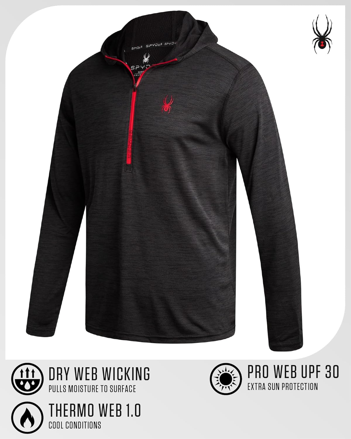 UPF 30+ Sun Protection Hoodie for Men: Engineered for the outdoors, this Spyder men's hoodie is built with UPF 30+ sun protection clothing, making it a smart pick for anyone needing golf shirts for men, rash guard for men, or hiking shirts men. Whether you're fishing, training, or exploring, this long sleeve shirt men keeps you protected and dry thanks to its moisture wicking shirts for men build.