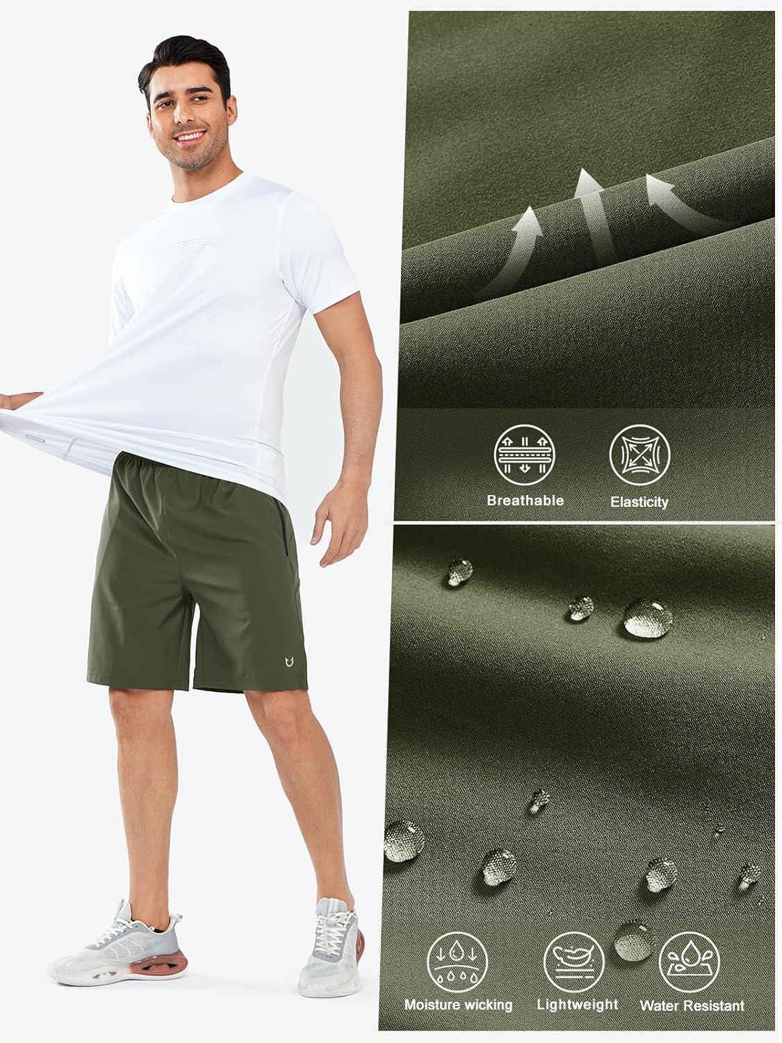 Lightweight & Breathability: Men's athletic 7inch shorts are made quality 4-Way Stretch/breathable and quick-drying fabric helps to wick away moisture and dry quickly keep you cool A synthetic of polyester and spandex can be very durable, abrasion-resistant, and stretchy enough to allow for better mobility.