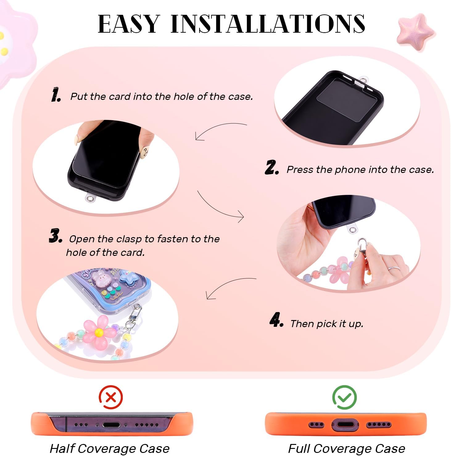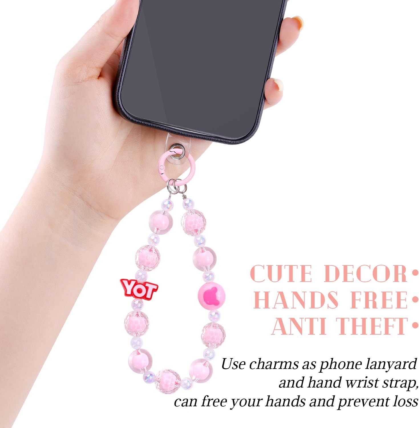 Multi-Functional -- They improve your phone’s grip, reducing the risk of accidental drops. Hanging phone with phone charms can free your hands when you are riding,walking or need to pick up something else etc. ensuring your phone stays safe and stylish