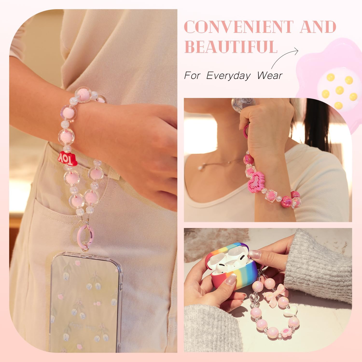 Wide Application -- You can not only use these cute charms as hand wrist strap,but also can decorate your keychains,bags,purse,camera,airpods,transit cards and so on,offer a unique way to personalize your device