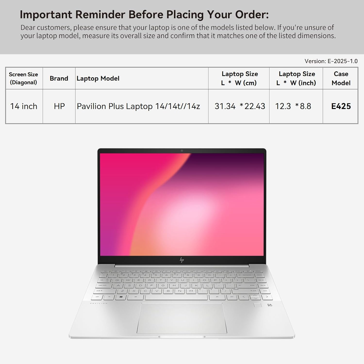Specifically designed for 14 inch HP Pavilion Plus Laptop 14-eh1047nr/eh0097nr/ew0010nr/ey0047nr; 14 inch HP Pavilion Plus Laptop 14t-eh100/ew000; 14 inch HP Pavilion Plus Laptop 14z-ey000. Our sleeve provides a precise, secure fit that minimizes movement and maximizes protection