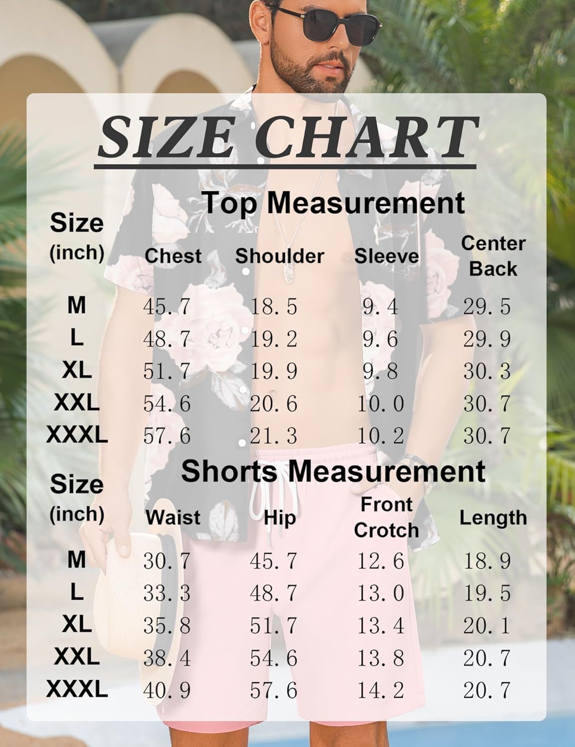 Occasion: Mens hawaiian aloha shirt sets are suitable for a variety of occasions, such as camp, walking, beach vacations, tropical travels, gatherings, summer parties, swimming, cruise or any casual daily wear. Mens tropical shirts and shorts set is an excellent gift for fathers, husbands, sons and friends.