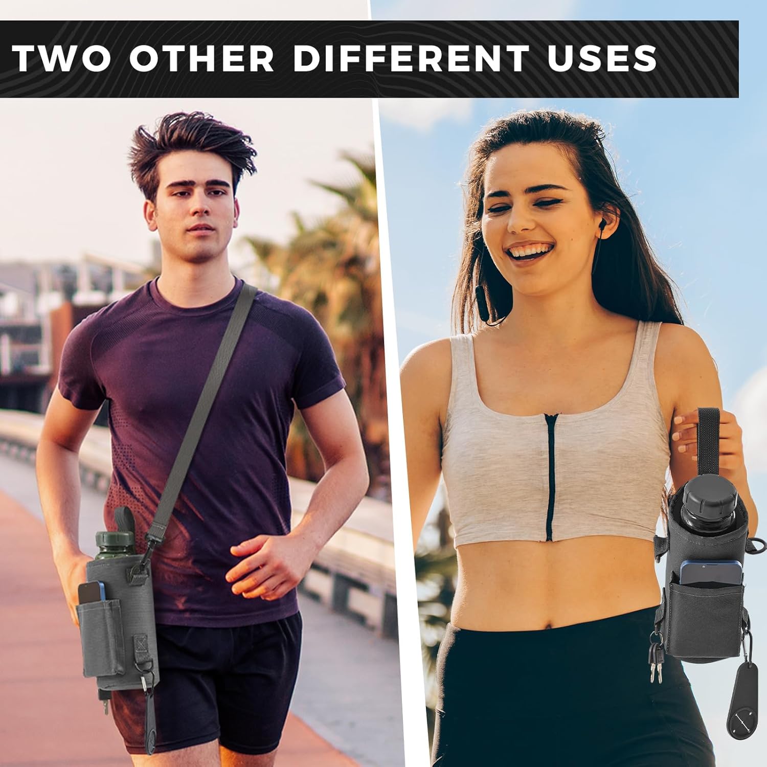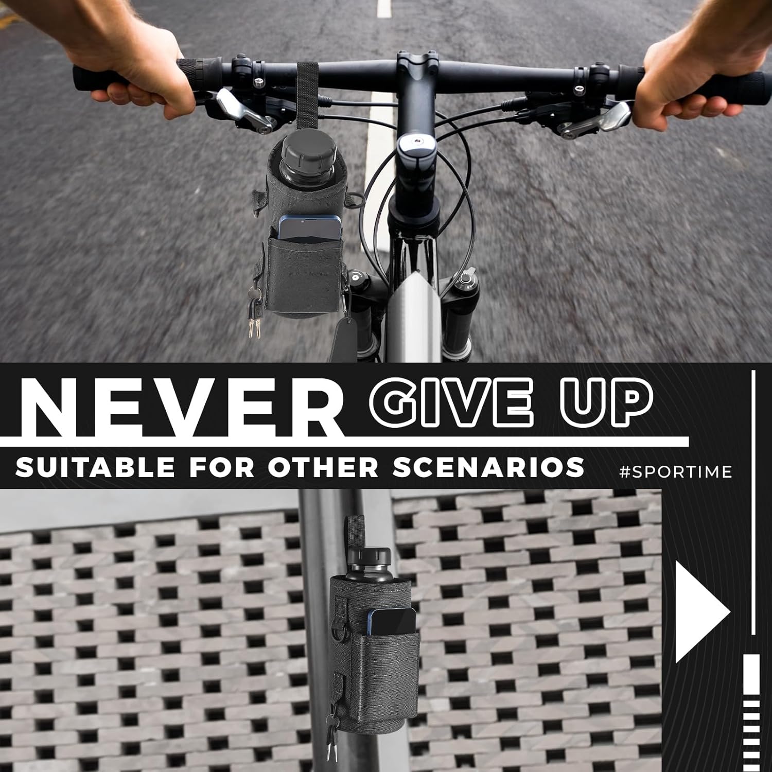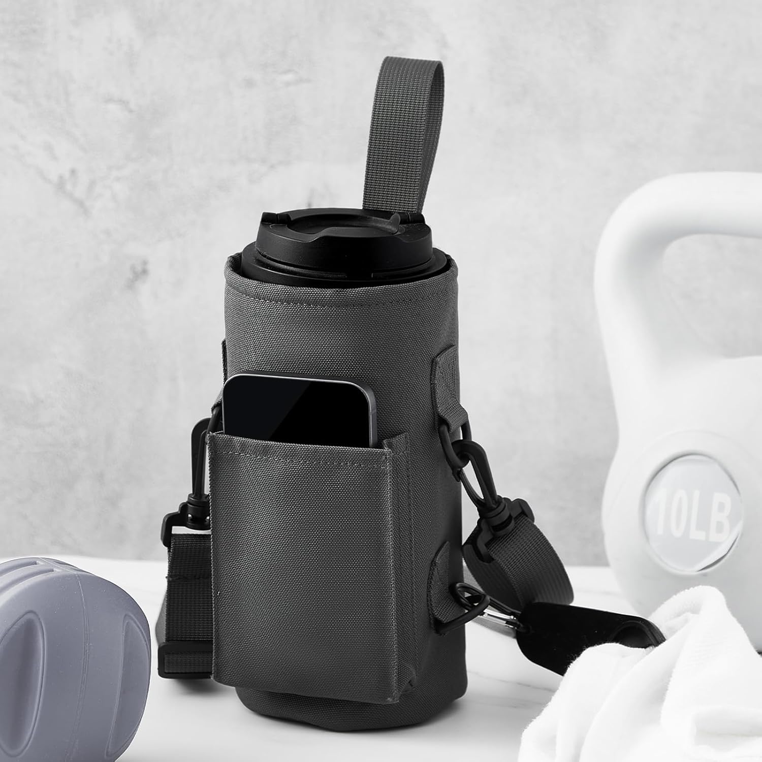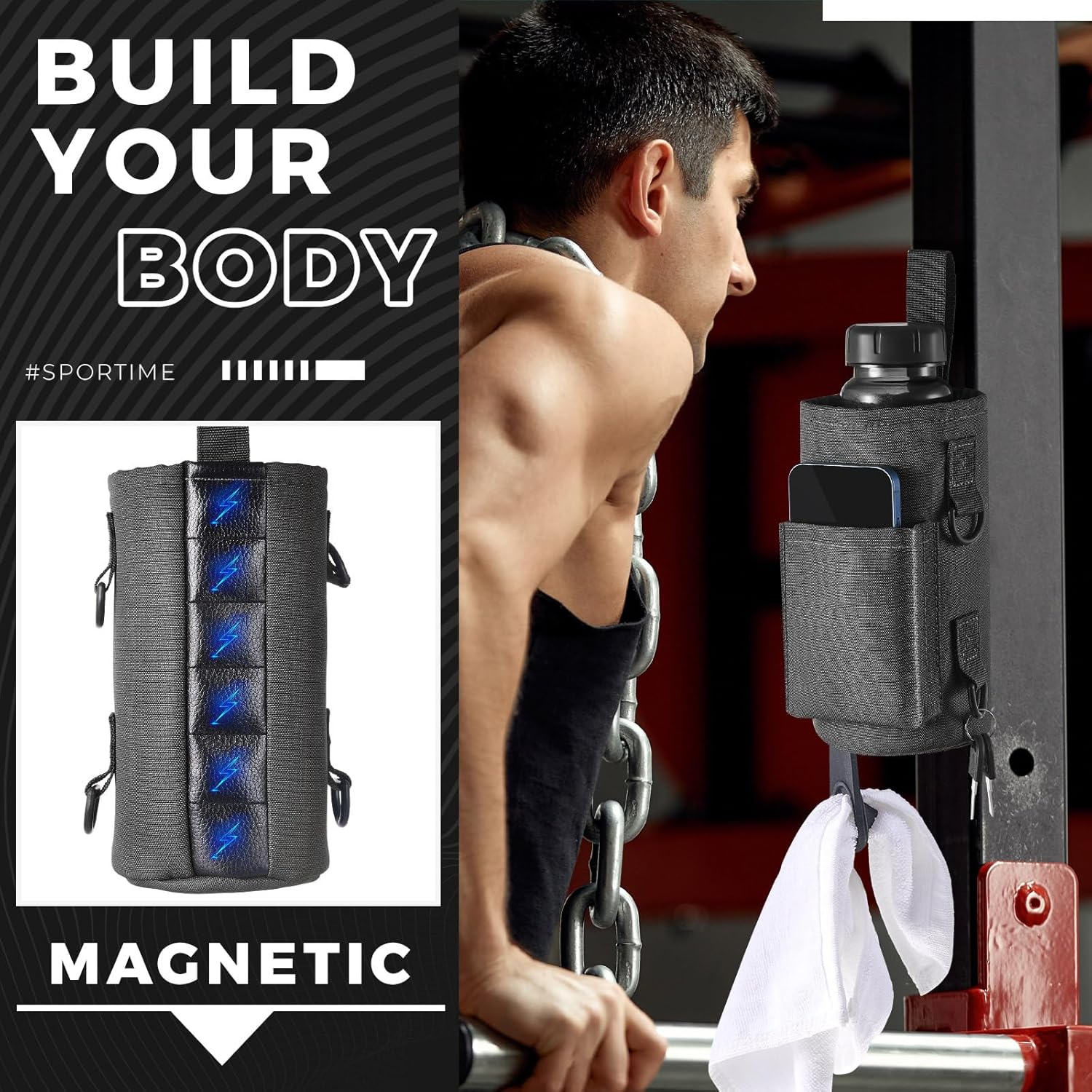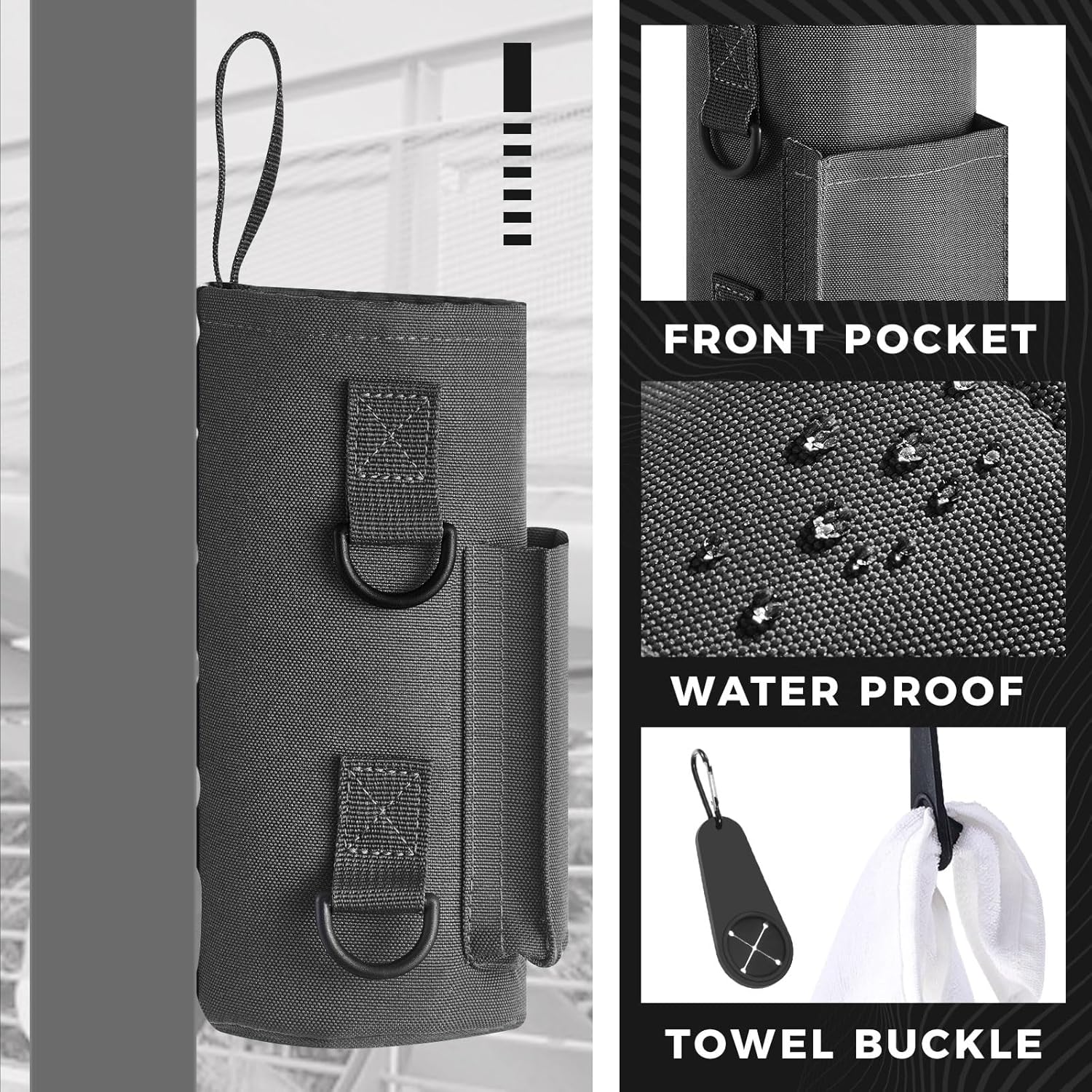 Domensi Magnetic Water Bottle Holder Gym Water Bottle Carrier Bag Pouch Sleeve with Phone Pocket Silicone Towel Buckle and...