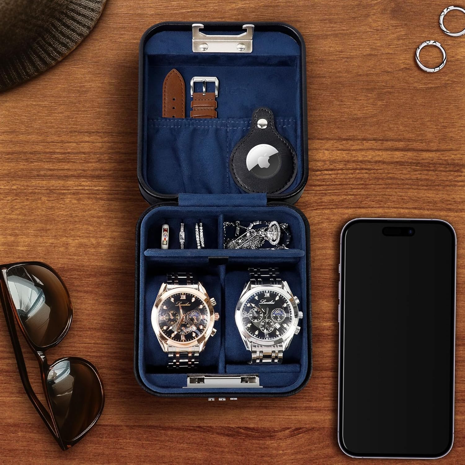 【Reliable Protection】This watch travel case with a combination lock is great for keeping your privacy and items safe while travelling, the AirTag holder make you find your watch box quickly (refer to the manual for setting the lock, if you have questions, please contact us).