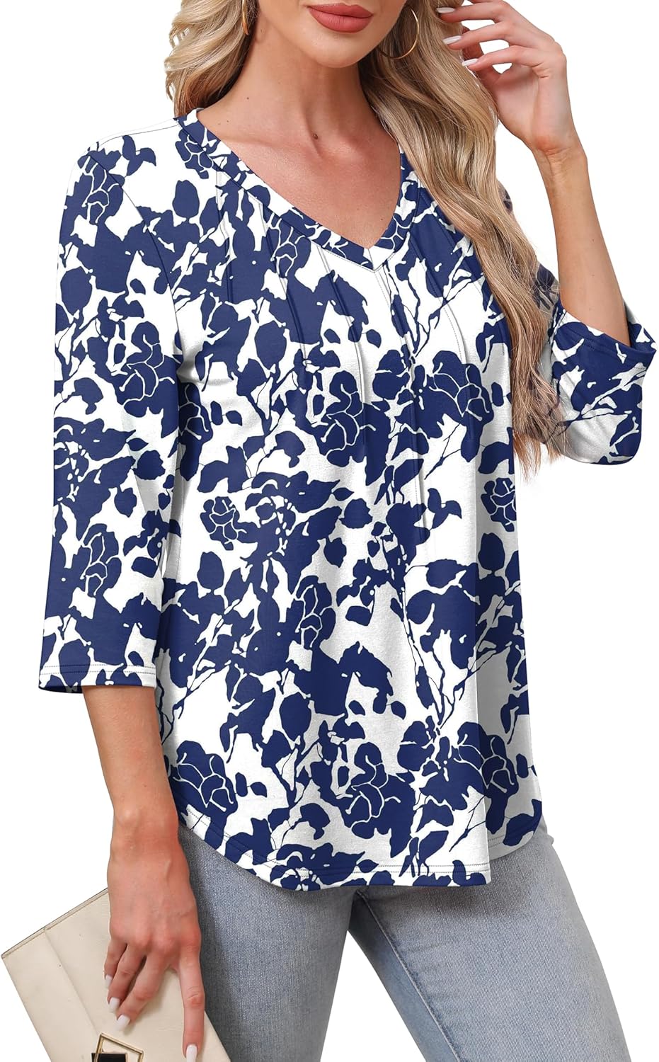 Features: 3/4 length sleeve womens tops, blouses for women dressy casual, v neck t shirts with front pleated design provide a flattering and elegant look, while the curved hem and loose fit style great for any body type