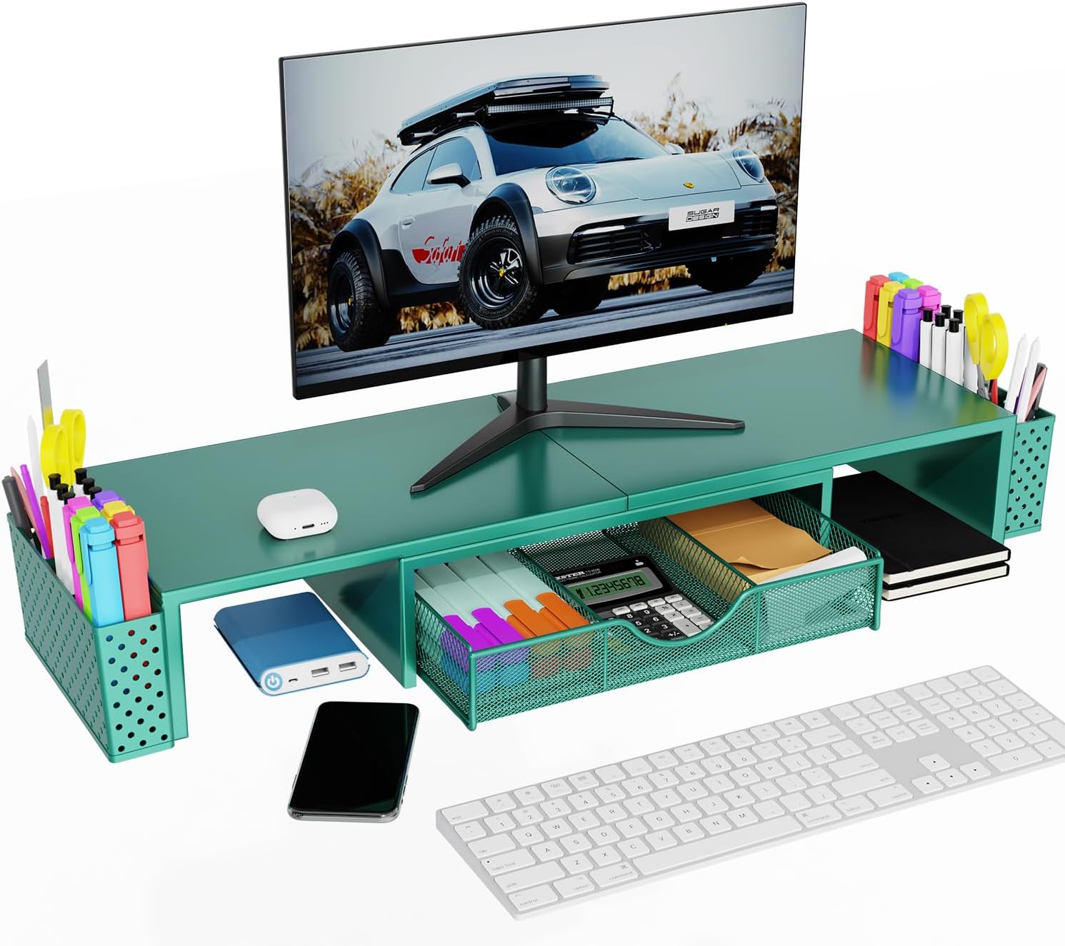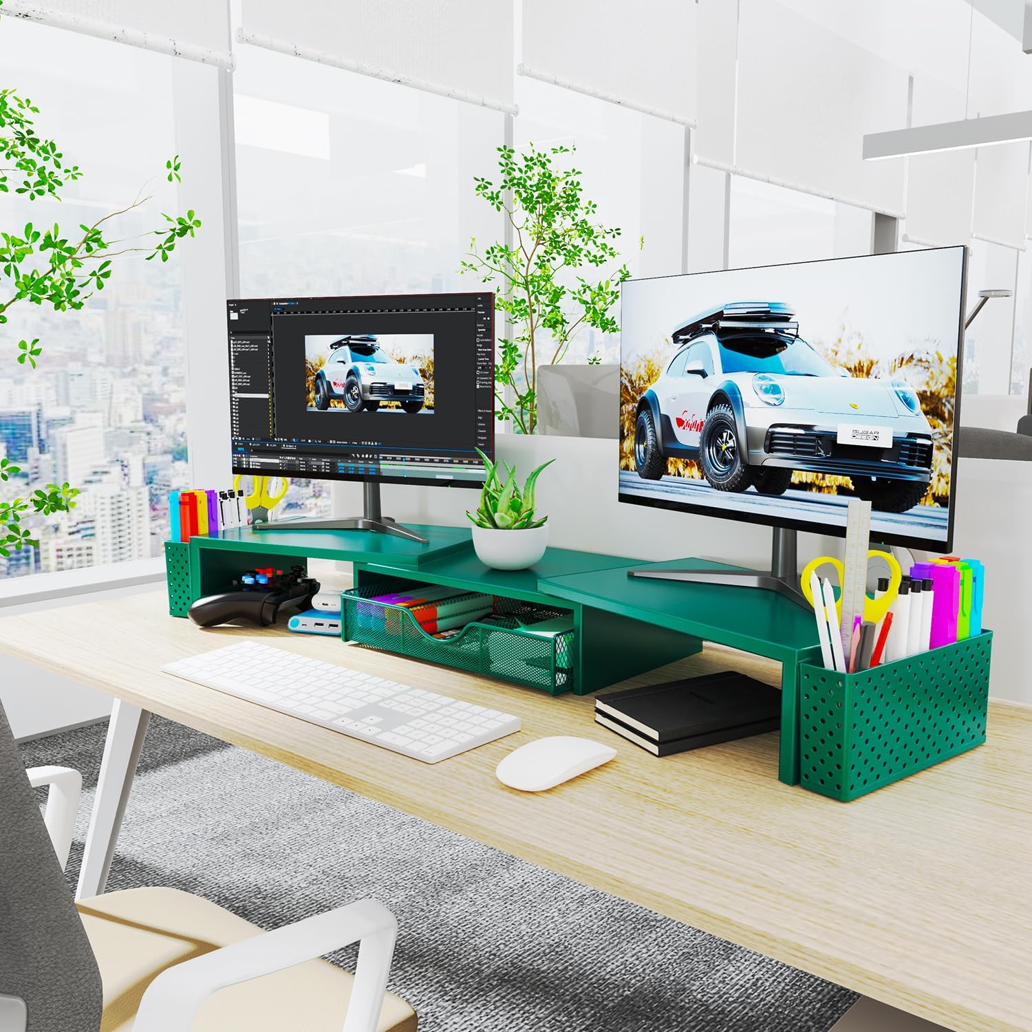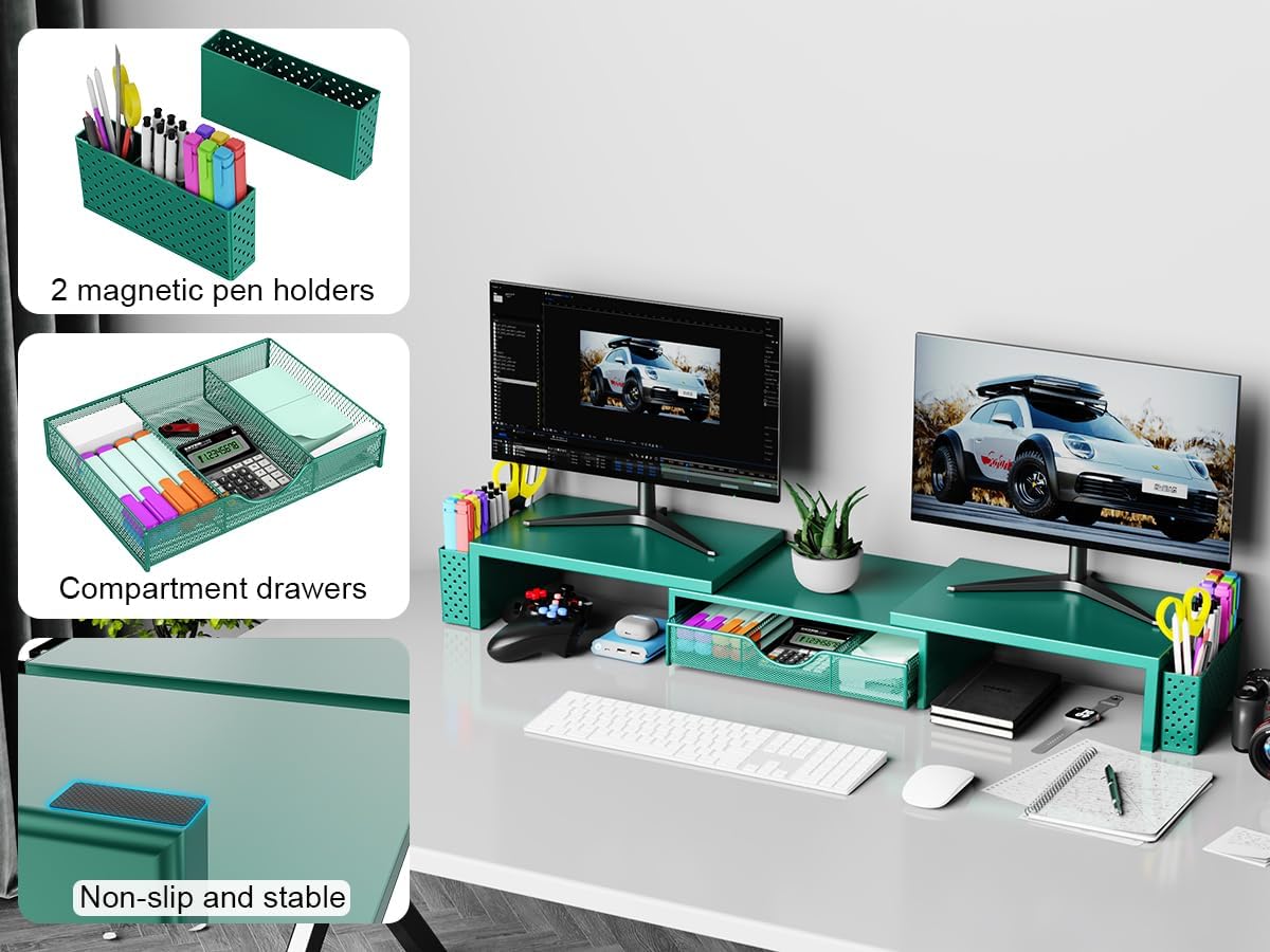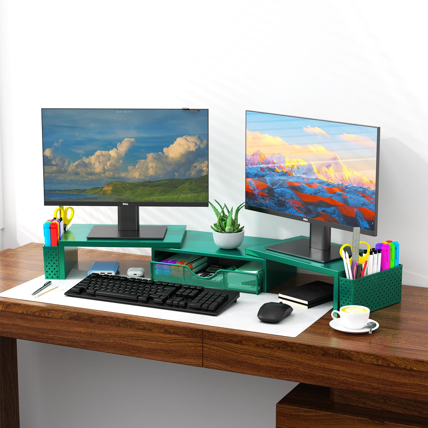 Dual-screen office efficiency improvement: This desktop organizer is equipped with a dual-display stand, which can place two monitors at the same time, effectively expanding the workspace. It also has adjustable length (27.6-40.6 inches) and angle to provide you with a better viewing experience.