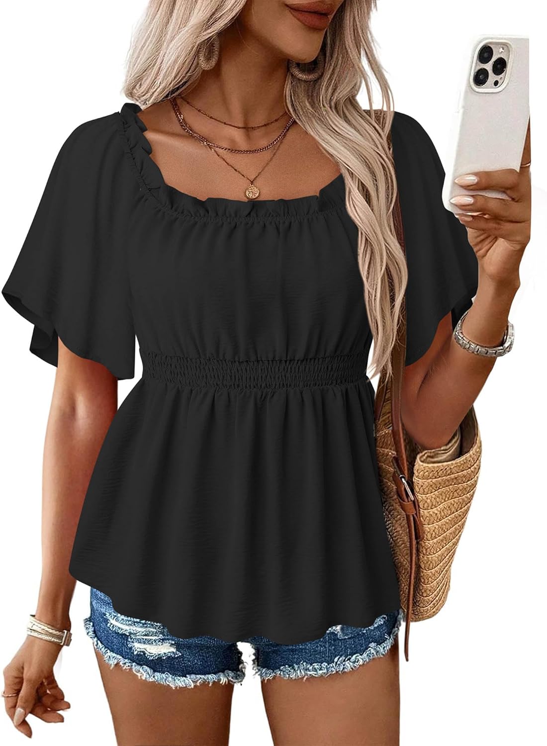 No Need To Tuck: This bohemian look peplum versatility tops easy to wear that can be worn with casual shorts jeans, skirt,leggings,loose trousers and dressier pants;A chic ruffled hem detail lends the top a playful feel while hiding your tummy perfectly