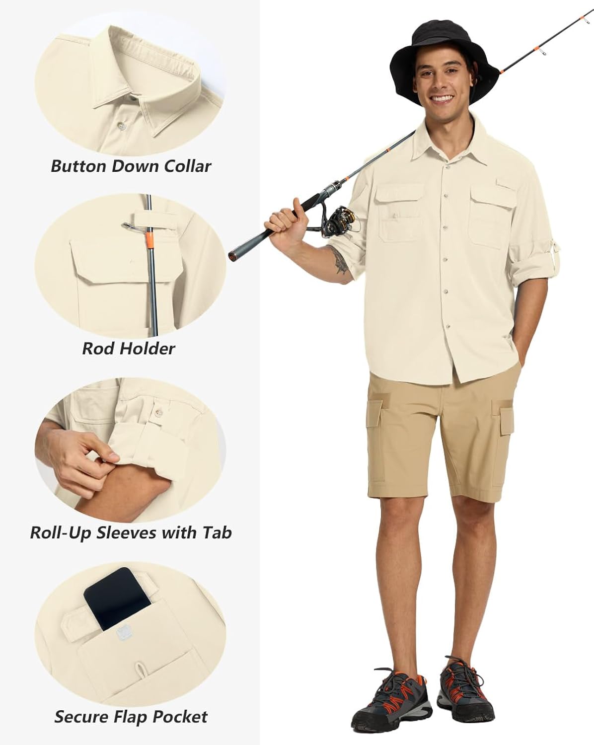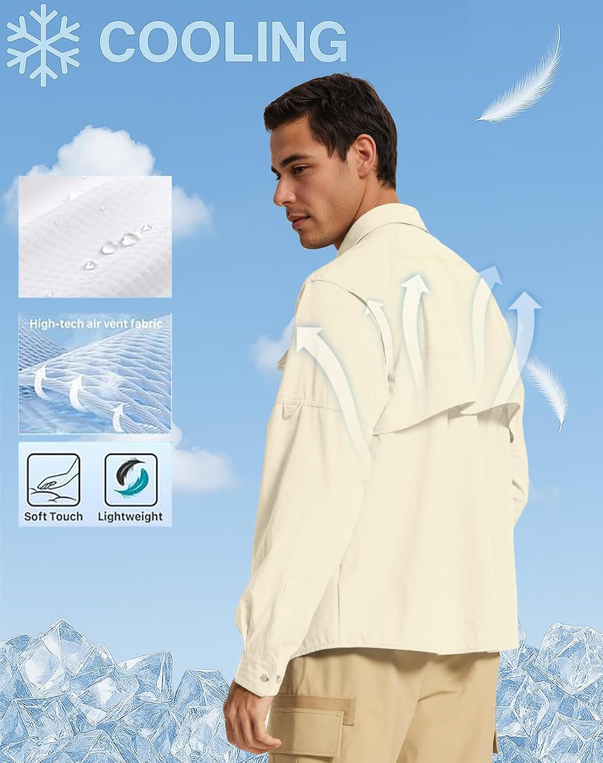 GIFTIME Fishing Shirts for Men Long Sleeve Sun Protection Outdoor Safari Shirt Men Clothes, Quick Dry Mens Fishing Shirts