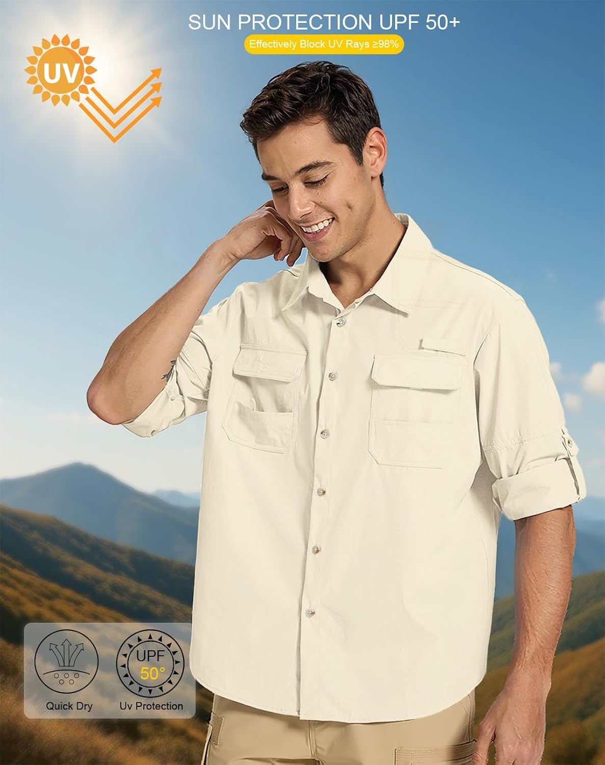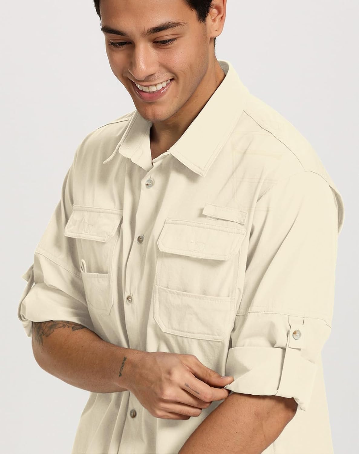 Versatile Style For Any Adventure : From boat deck to backcountry, this men's fishing shirts combines the function of outdoor shirts for men, cargo shirts for men, mens safari shirt with the relaxed style of camisas para hombres, mens casual shirts, giving you a polished look and reliable protection