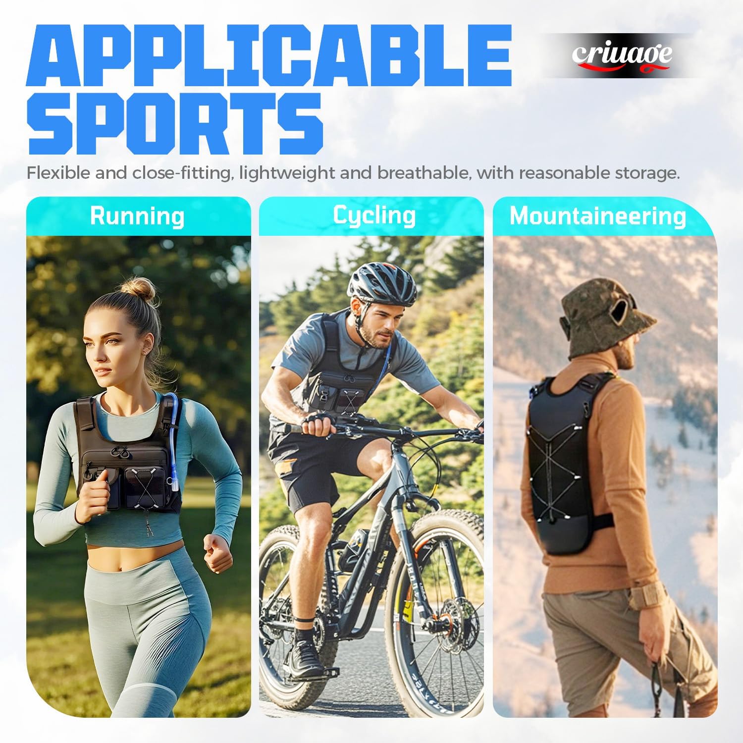 Criuage USA Original Patent Running Hydration Vest Backpack, Lightweight Chest Pack with 2.0L Water Bladder Bag Daypack fo...