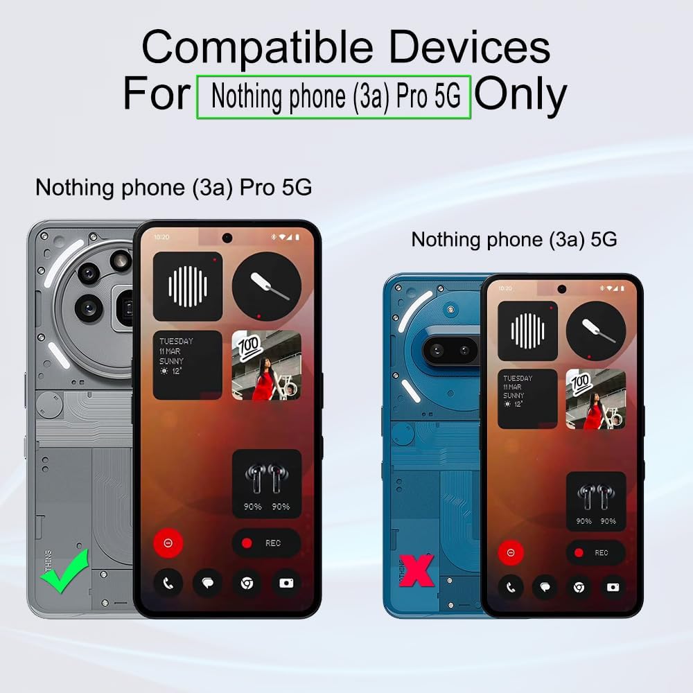 【Confirm Your Model】(Please Check your model in:"Settings-About Phone-Model") This screen protector ONLY COMPATIBLE WITH Nothing Phone (3a) Pro 5G 6.77".Not for Nothing Phone (3a) 5G and any other model. if you need other models' protectors, please search in the brand store.