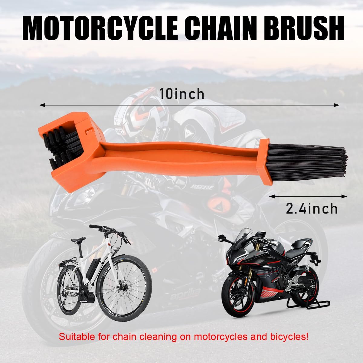 Wide Application: The product can be used to quickly remove dirt from any two-wheeled vehicle. For example, the chain as well as other parts of the body on motorcycles, bicycles, mountain bikes, road bikes, city bikes and more. So you can use it no matter what kind of car you own