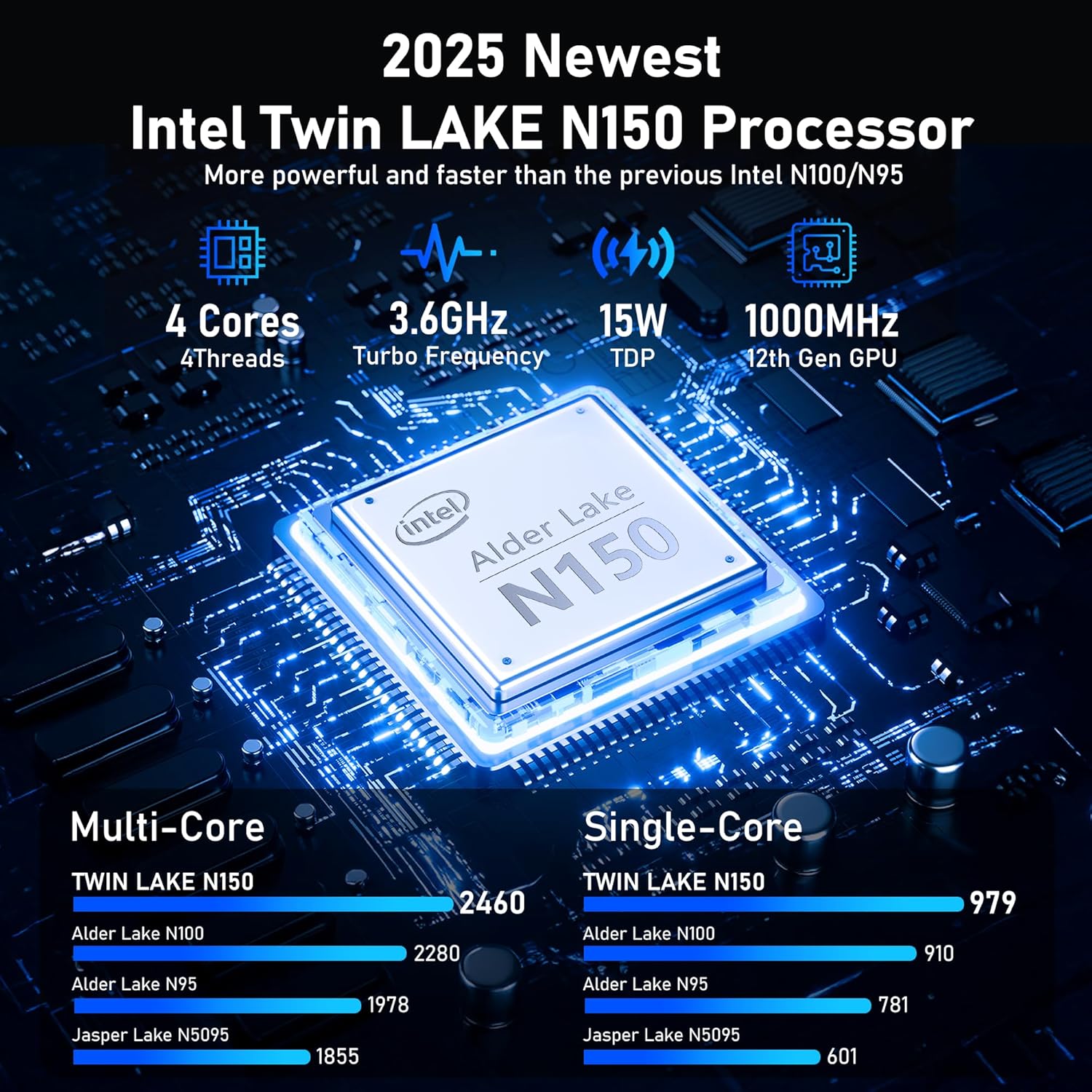 [Advanced Processor]: The laptop features the latest Intel 12th generation Alder Lake N150 processor with 3.6GHz boost frequency, 4 cores and 4 threads, providing powerful performance for multitasking, streaming, and gaming.
