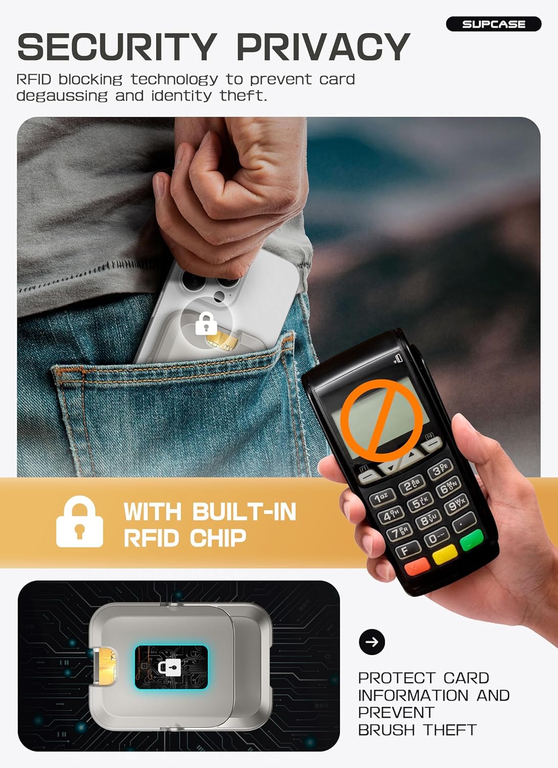 [Security & Privacy]: Built-in 1 RFID Chip with RFID blocking technology to prevent card demagnetization and identity theft, it can protect the information security of all cards in the wallet.