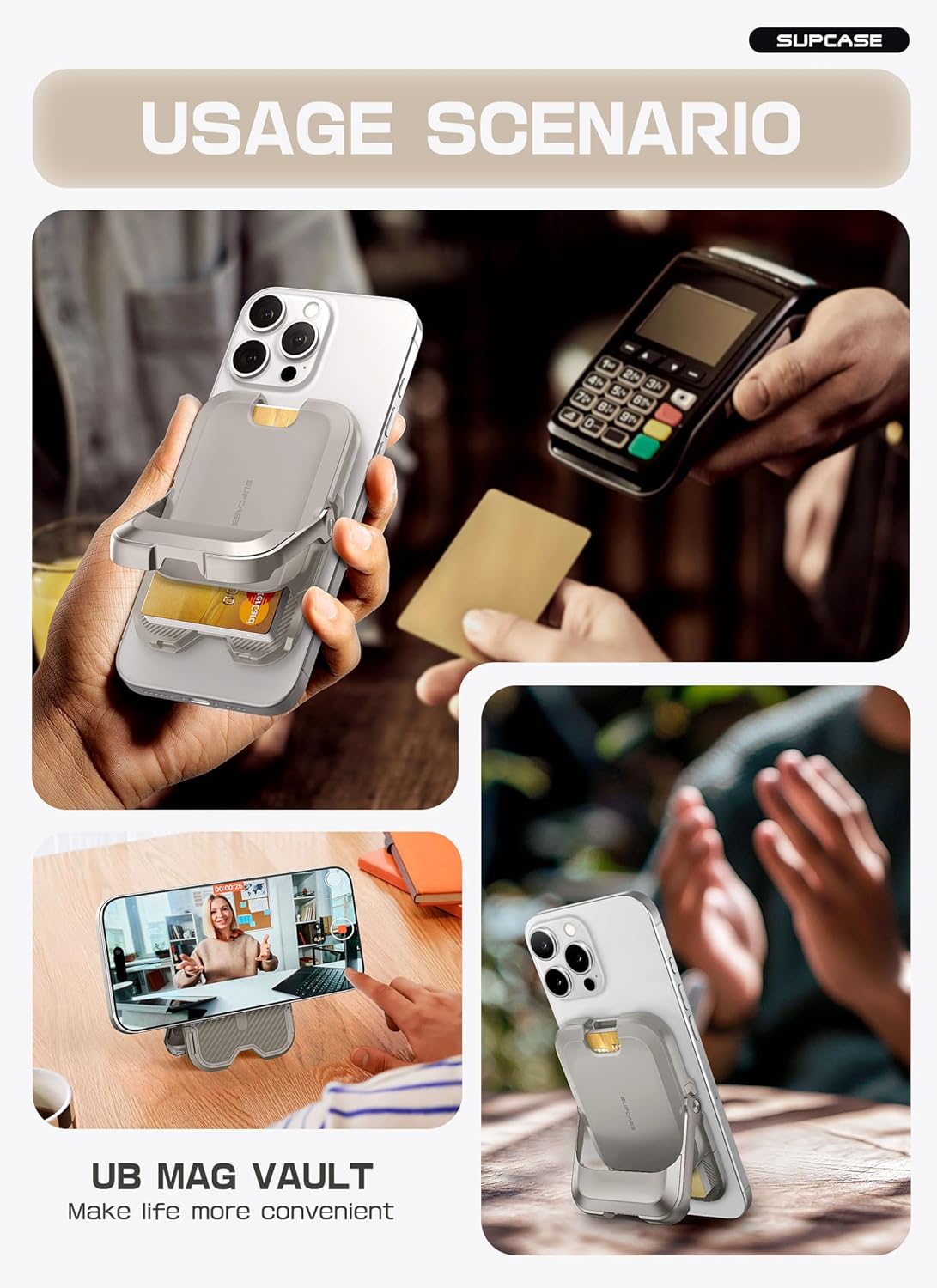 [Strong Magnetic Lock]:Built-in magnets, offering a magnetic force of up to 3000g. Ensures the magnetic wallet fits tightly and attaches securely to the back of your iPhone.