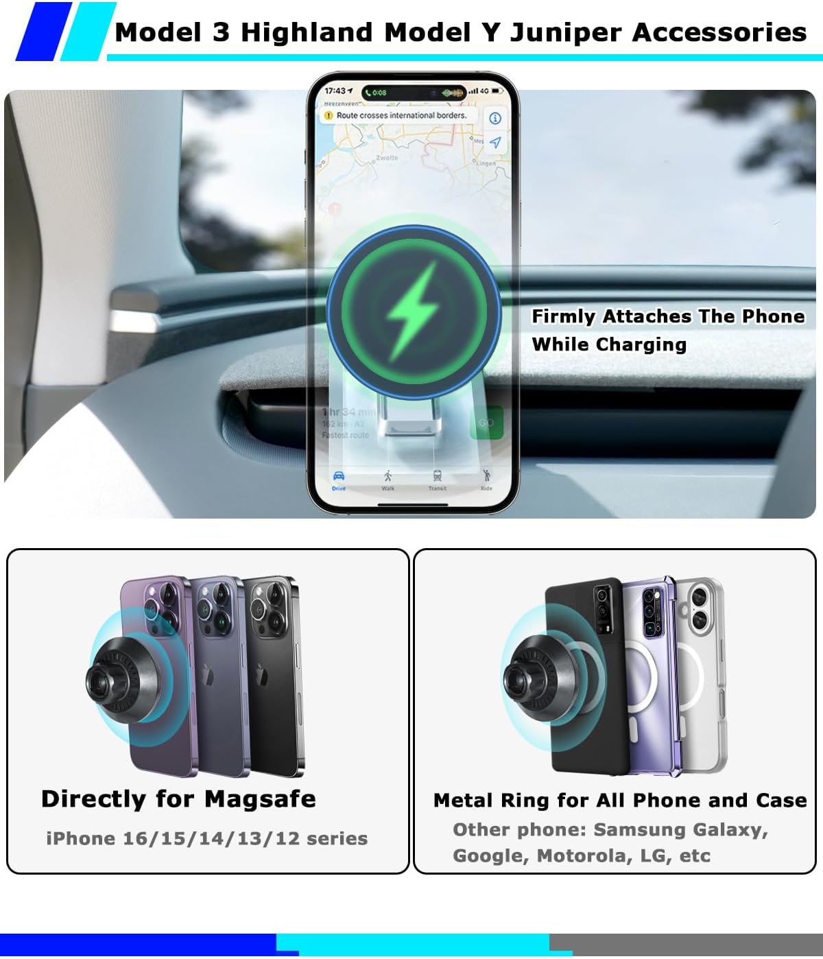 【Must-have Newest Model 3 Model Y Accessories】This phone holder is a professional accessory for Model 3 Highland and Model Y Juniper 2025. After installation, you can not only free your hands, but also watch the navigation while driving. And you don't have to worry about having nowhere to put your phone after getting in the car. This small accessory will bring an excellent upgrade experience to your driving experience.