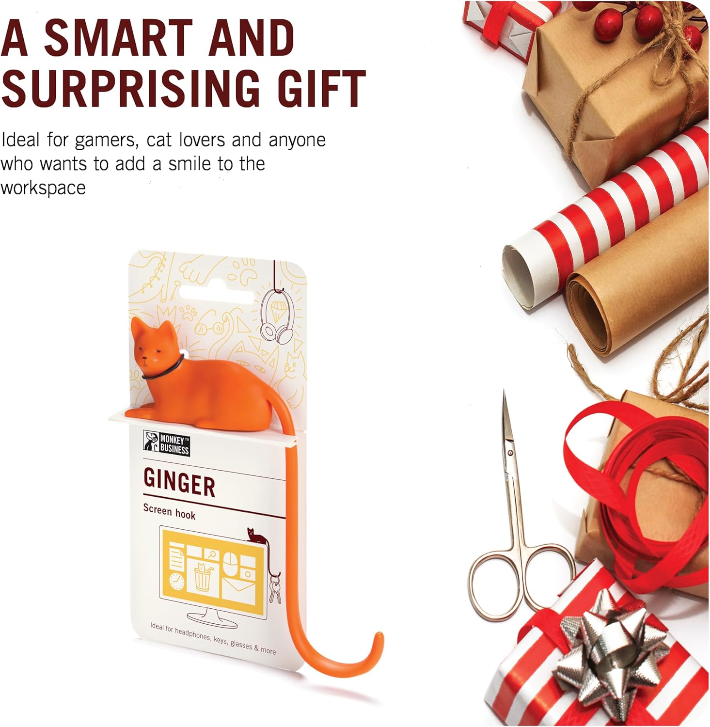 CAT'S GOT YOUR THINGS! - Tired of your keys, glasses, or headphones falling to the floor? The perfect accessory for a computer screen, if you need to keep your glasses safe and close by, or if you have an unruly keyboard cord you want to tame, Ginger the Cat just might be the answer!