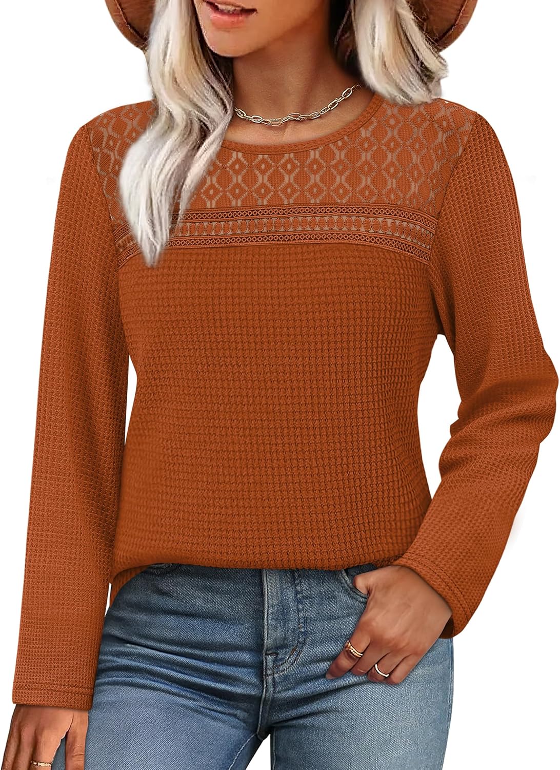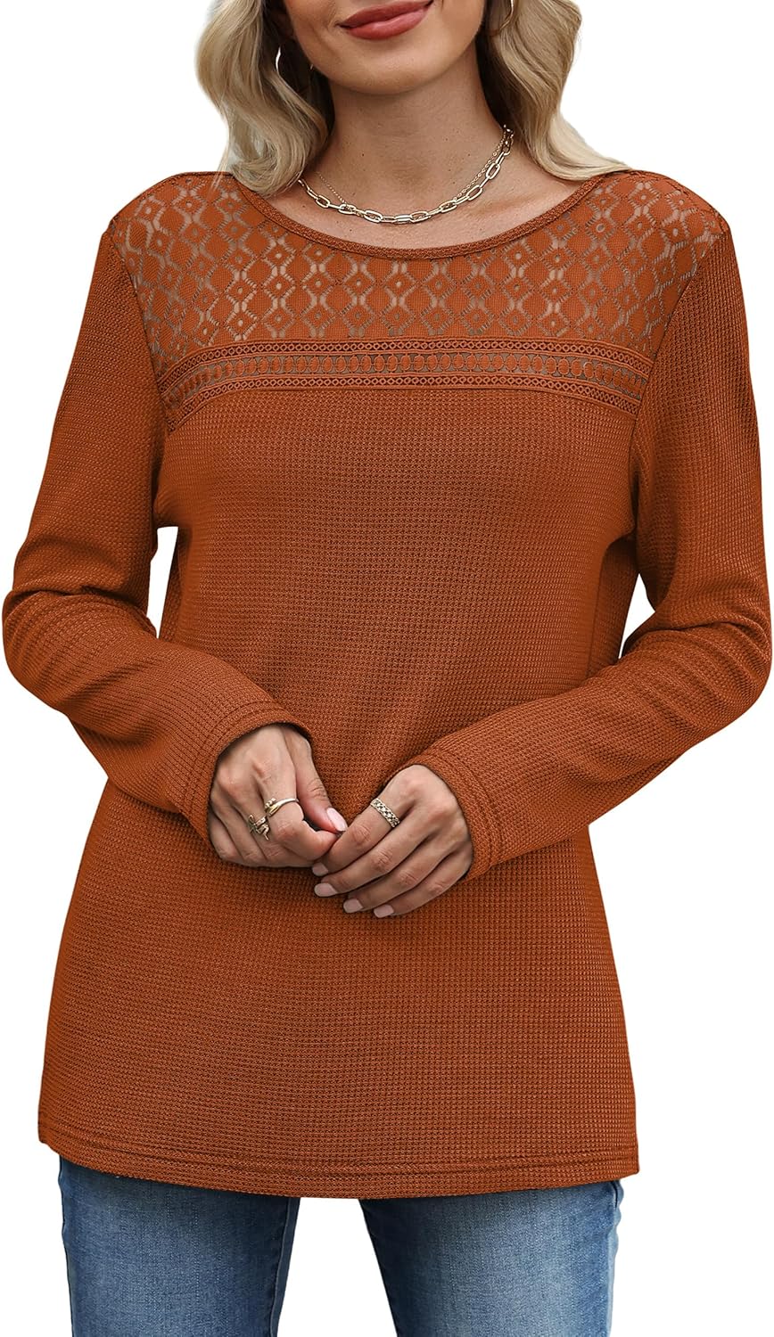 ♥Trendy Lace Design: Women Blouses with elegant lace, womens fall fashion 2025, long sleeve shirts are popular with ladies of all ages for daily fashion look
