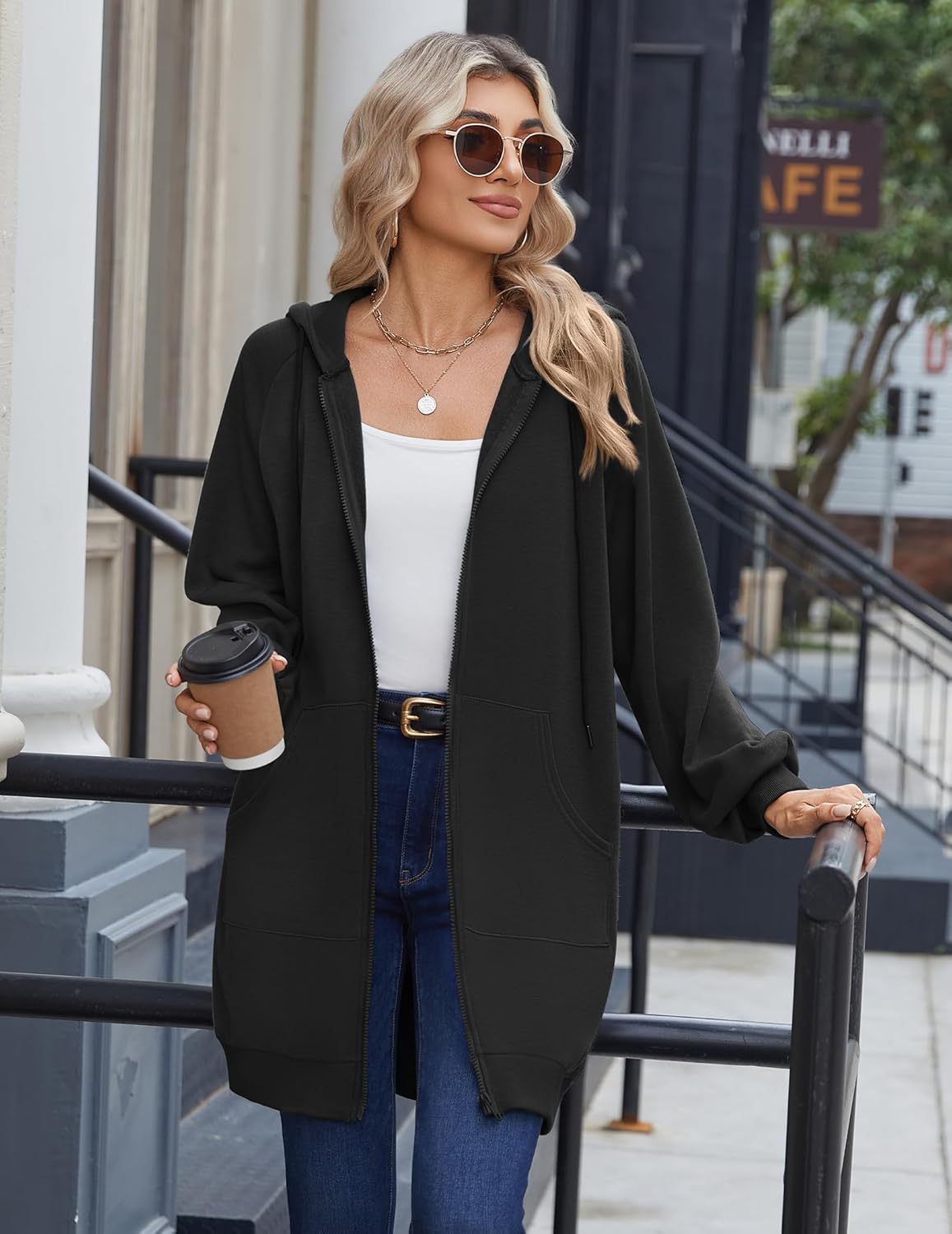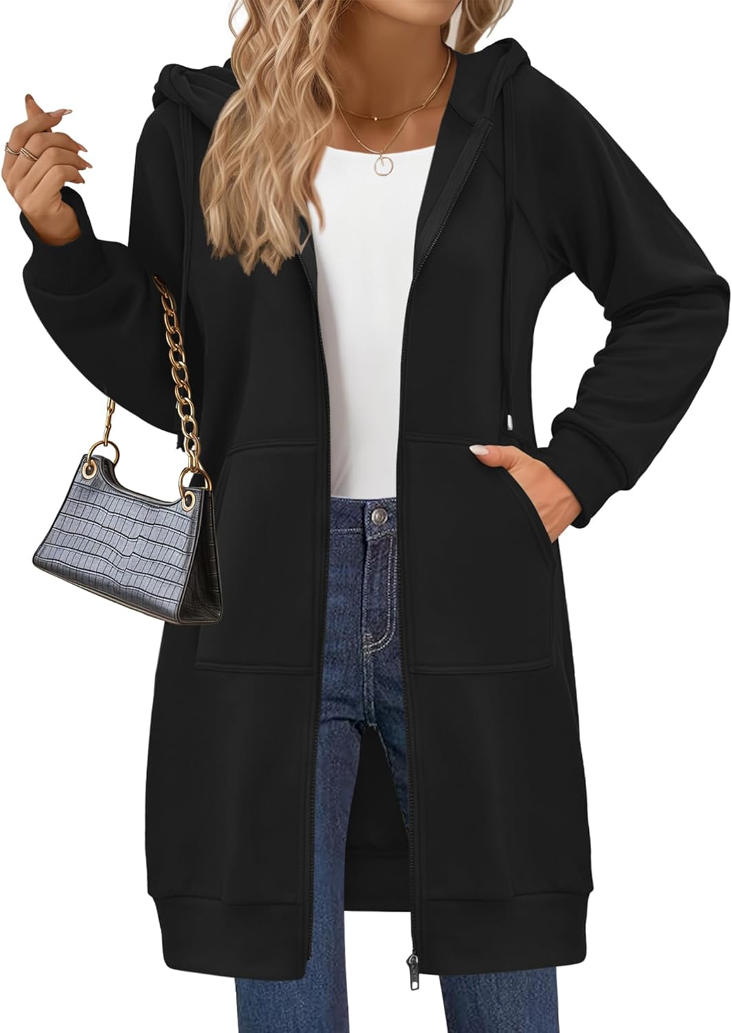 【Designs】: Above Knee length long hoodie/ long sweatshirt/ casual long sweatshirt/ long fleece tunic sweatshirt/ fleece zip-up women/ oversized zip-up hoodie / trendy long zippered sweatshirt/ long sweatshirt jacket/hoodie sweaters for women/ fleece/ big pockets/ drawstring/ full-zip closure, this women's long hooded jacket can be worn in many ways, zipped up as a sweatshirt or as a fleece jacket.