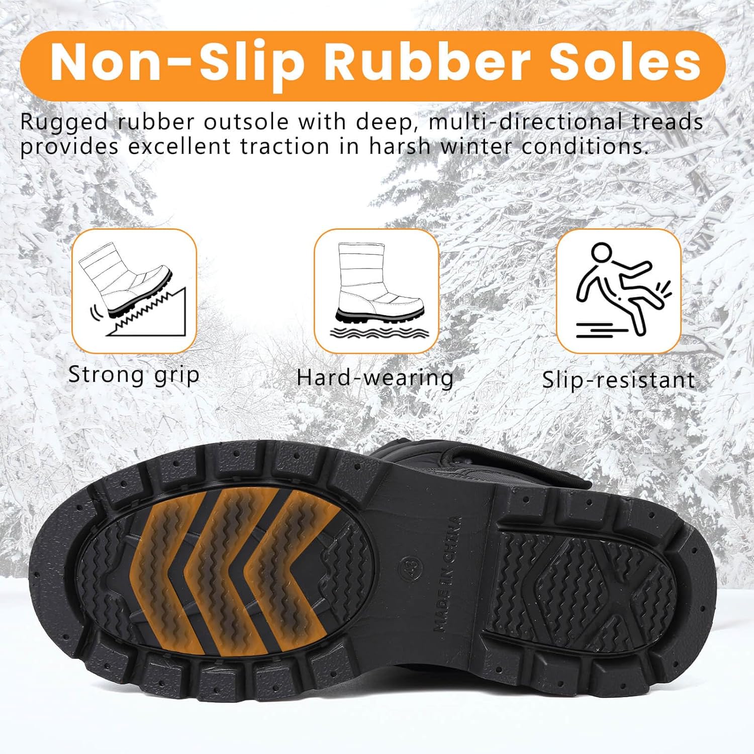 Slip-Resistant Outsole:The rugged outsole of these mens snow boots is designed with deep, multi-directional lugs and textured tread patterns that provide superior grip on icy, wet, or uneven surfaces — a true anti-slip solution for winter.