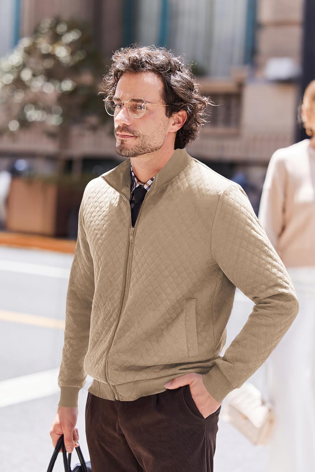 COOFANDY Mens Zip Up Sweatshirt Mock Neck Quilted Jacket Casual Lightweight Sweater Jackets with Pocket