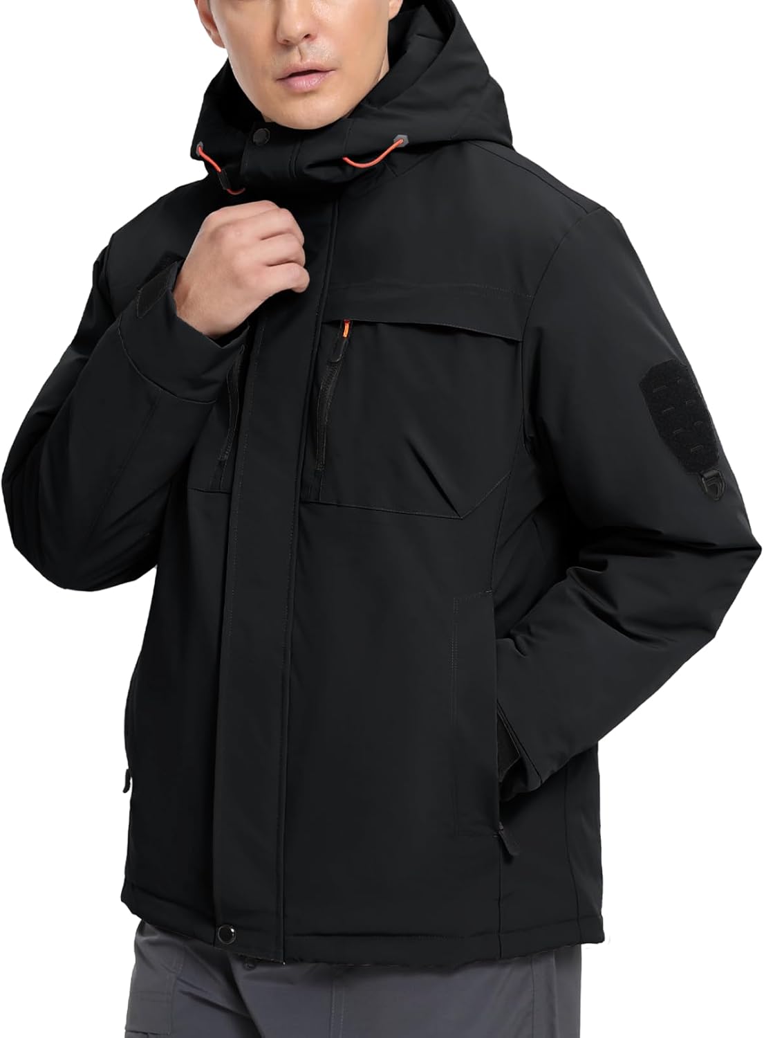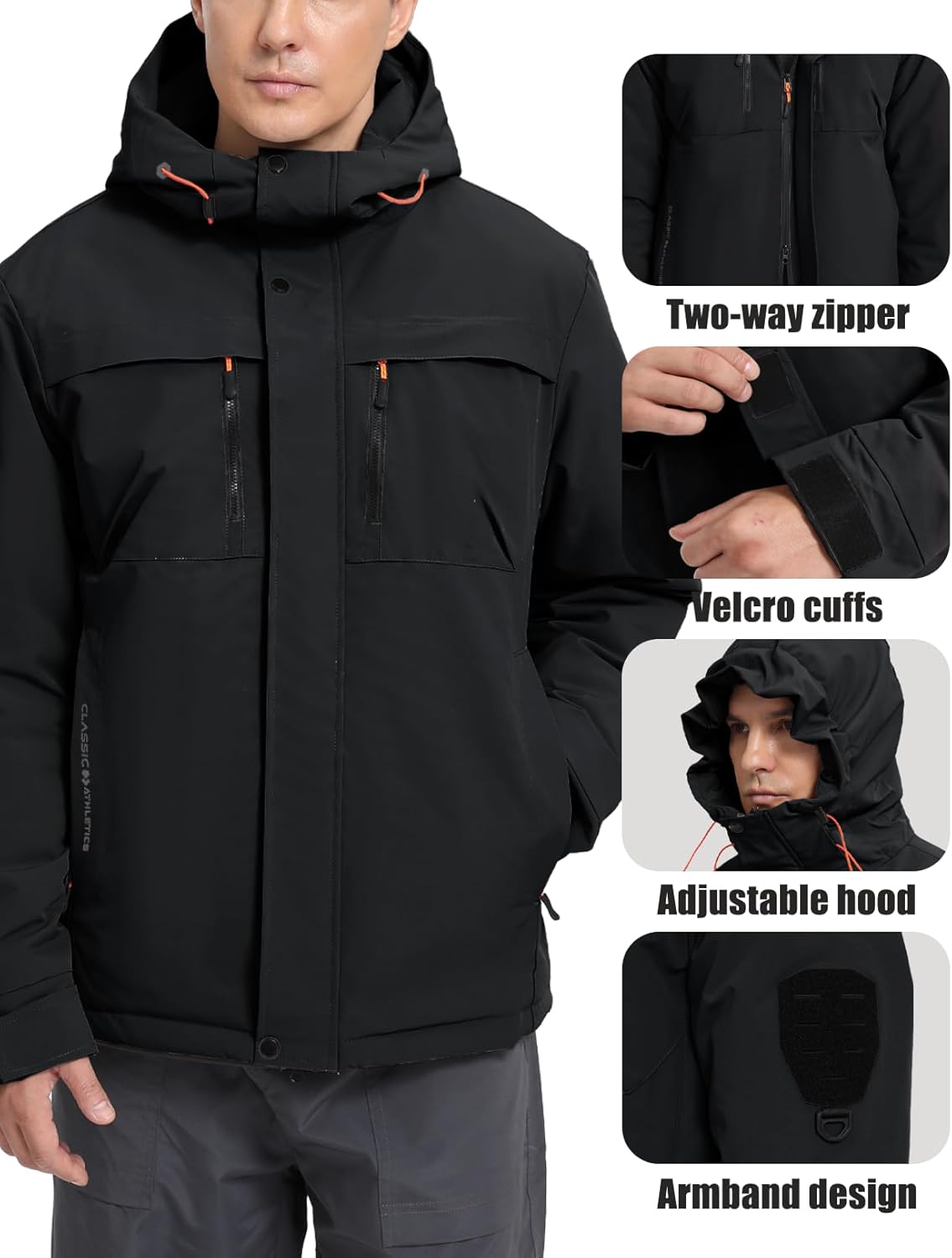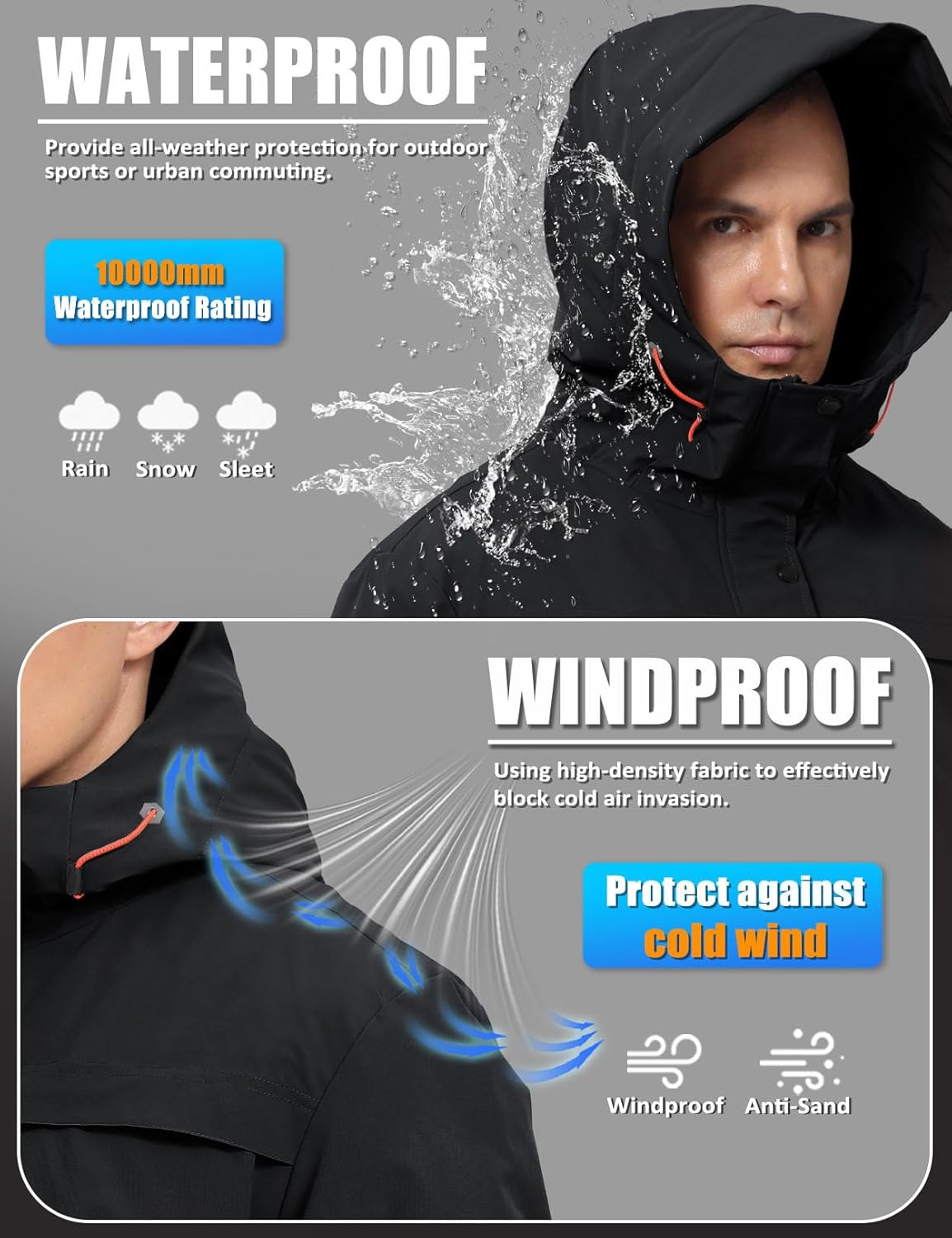 Waterproof & Windproof Protection: Crafted from high-performance fabric with a rating 10000mm water-resistant coating and windproof structure, this mens insulated ski jacket keeps you dry even in harsh mountain conditions, delivering all-around protection for skiing, snowboarding, hiking and other outdoor winter activities.
