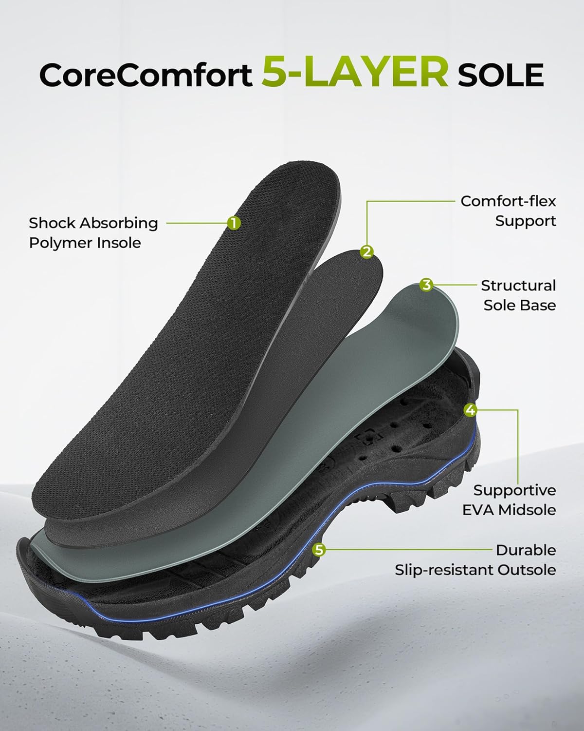 All-day Comfort – Featuring the CoreComfort 5-layer Sole System, these men’s hunting boots include a shock-absorbing insole, EVA midsole support, and a slip-resistant outsole to reduce foot fatigue. Ideal for long hikes, cold-weather hunts, or working all day on the farm.
