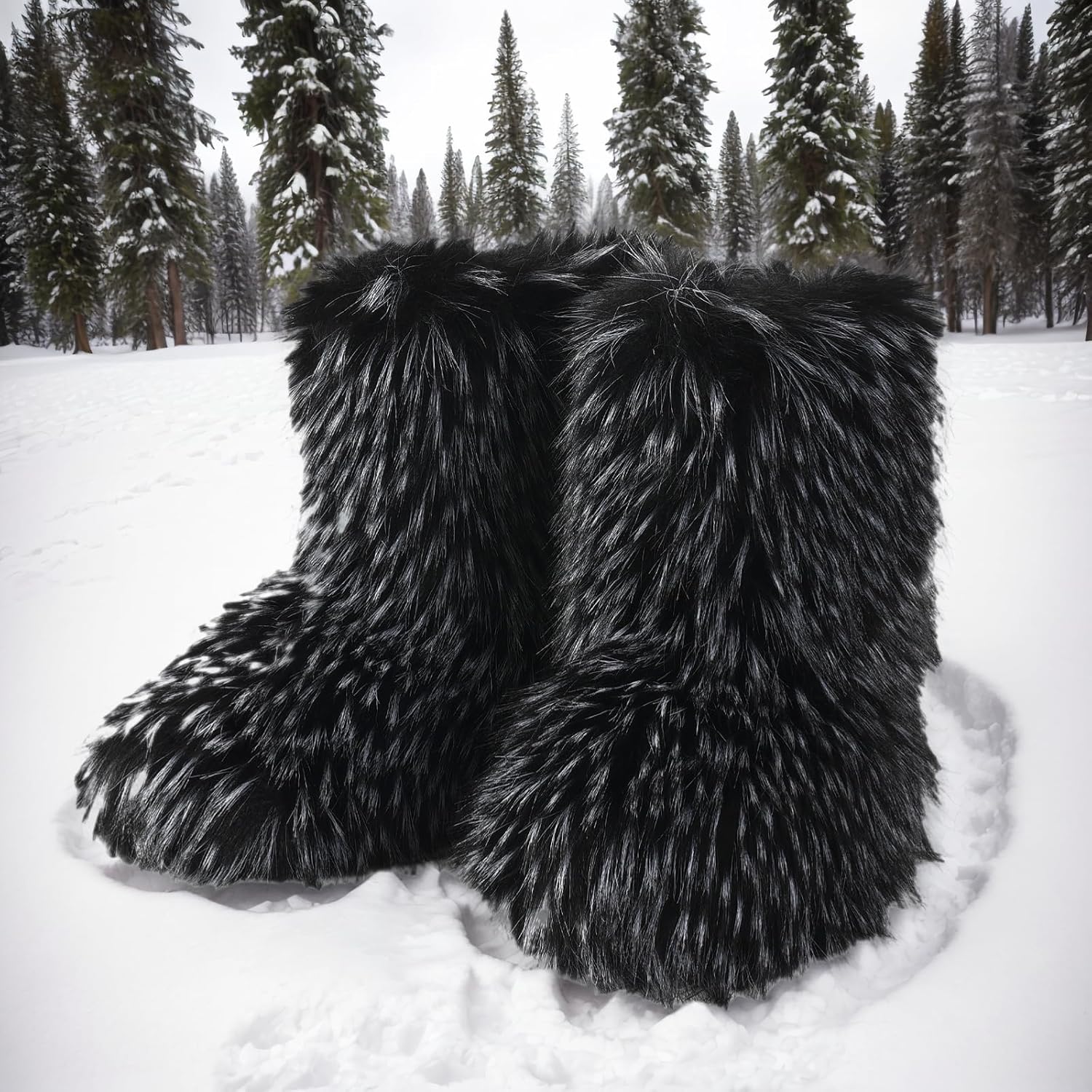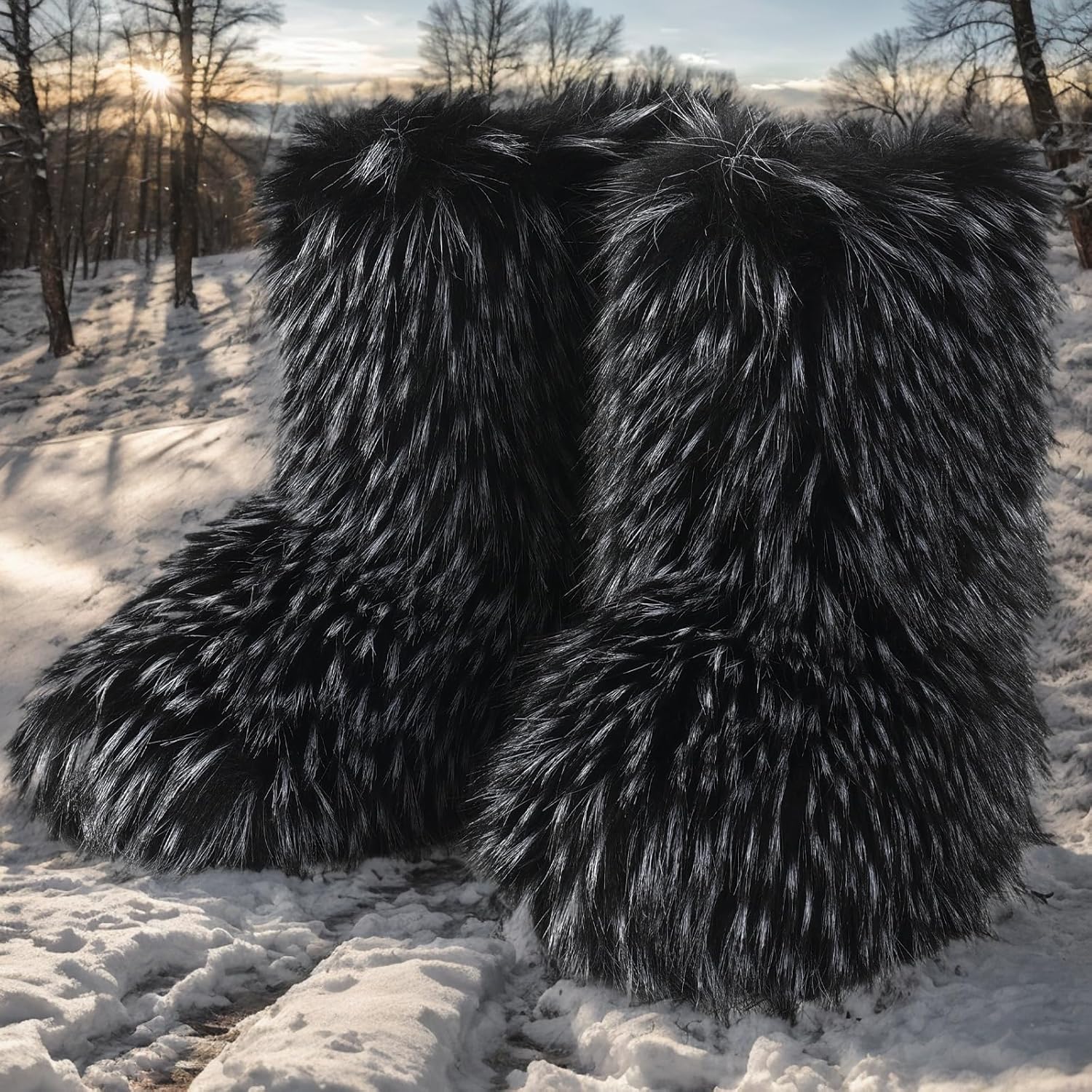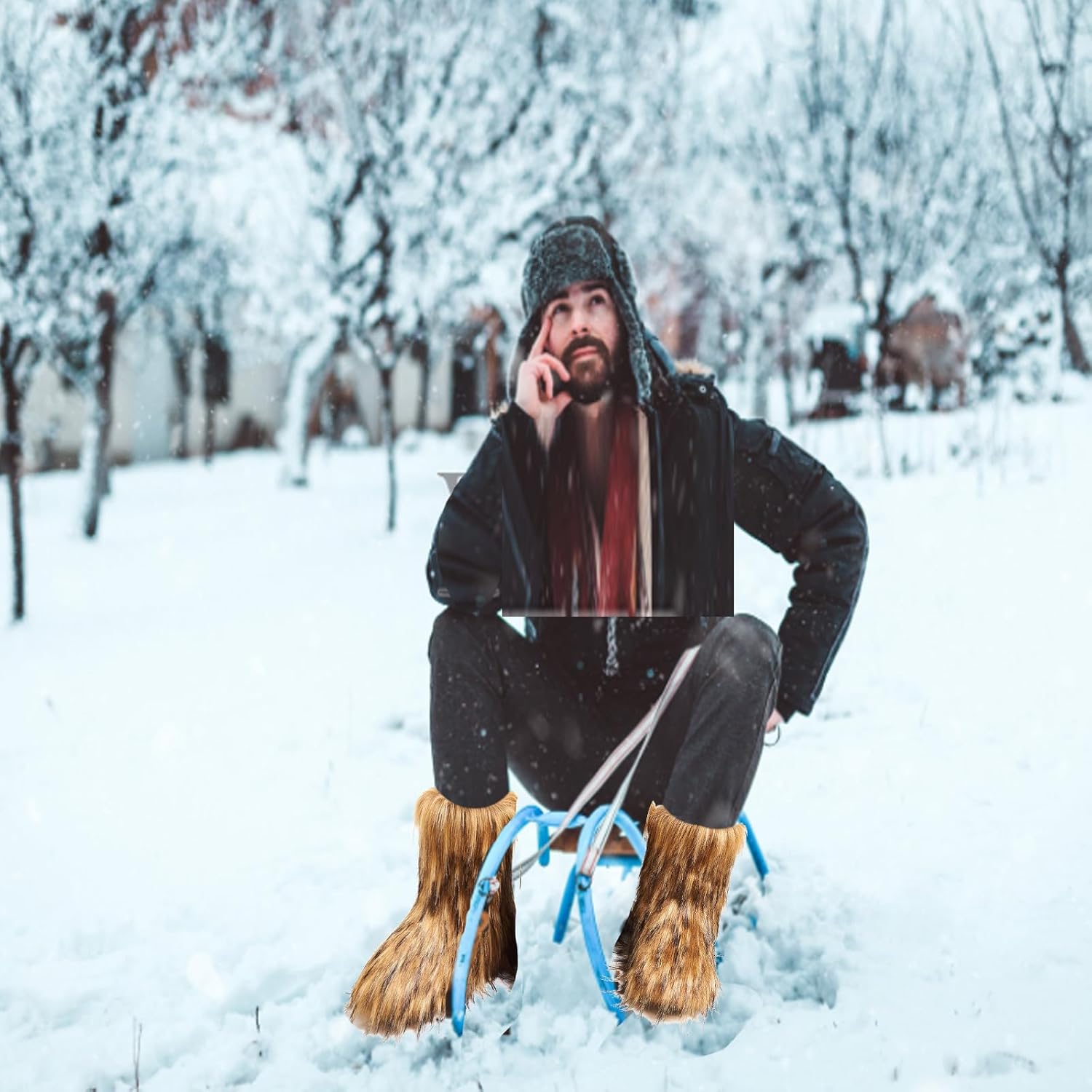 High-Quality Faux Fur: Made with premium faux fur, these Furry Boots are not only stylish but also incredibly warm and cozy. The fluffy boots add an extra layer of insulation, making them ideal men's winter boots for harsh conditions.