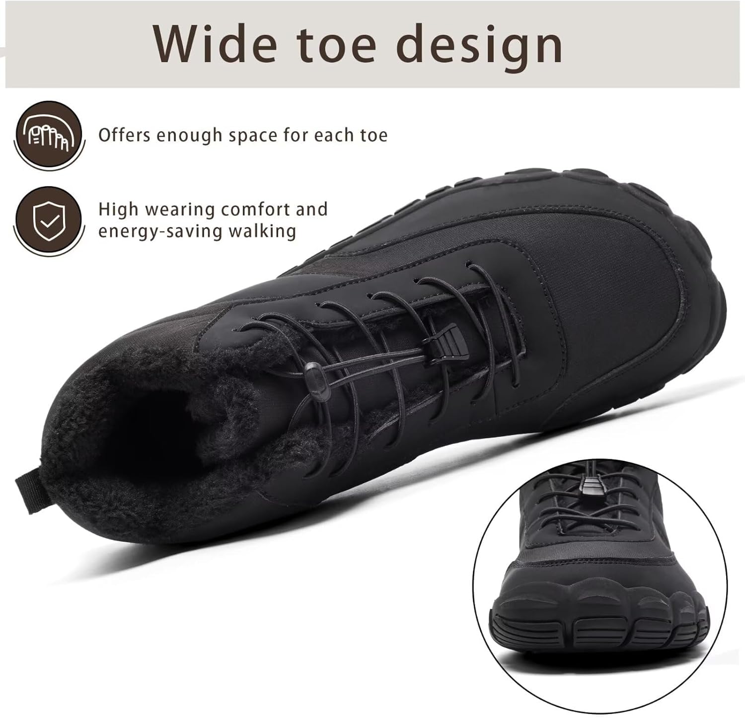Water Resistant: Our barefoot boots for men are water-resistant and fur lined, offering exceptional protection for your ankles while blocking out wind and snow. Ideal for hiking, running, workouts, and various outdoor activities.