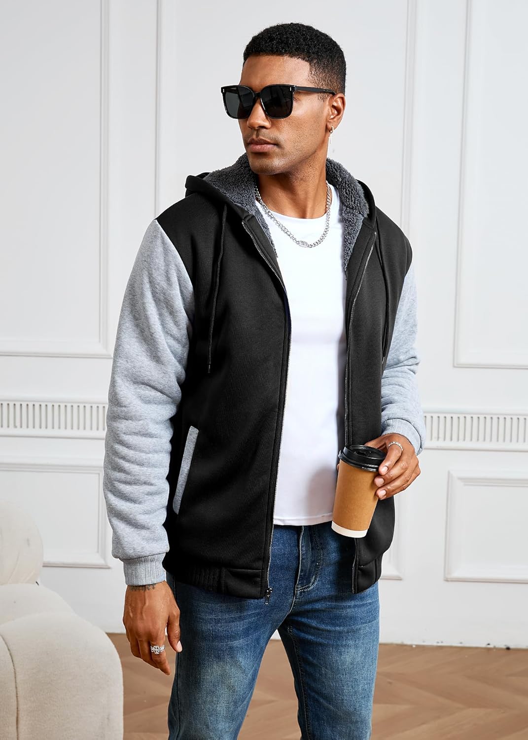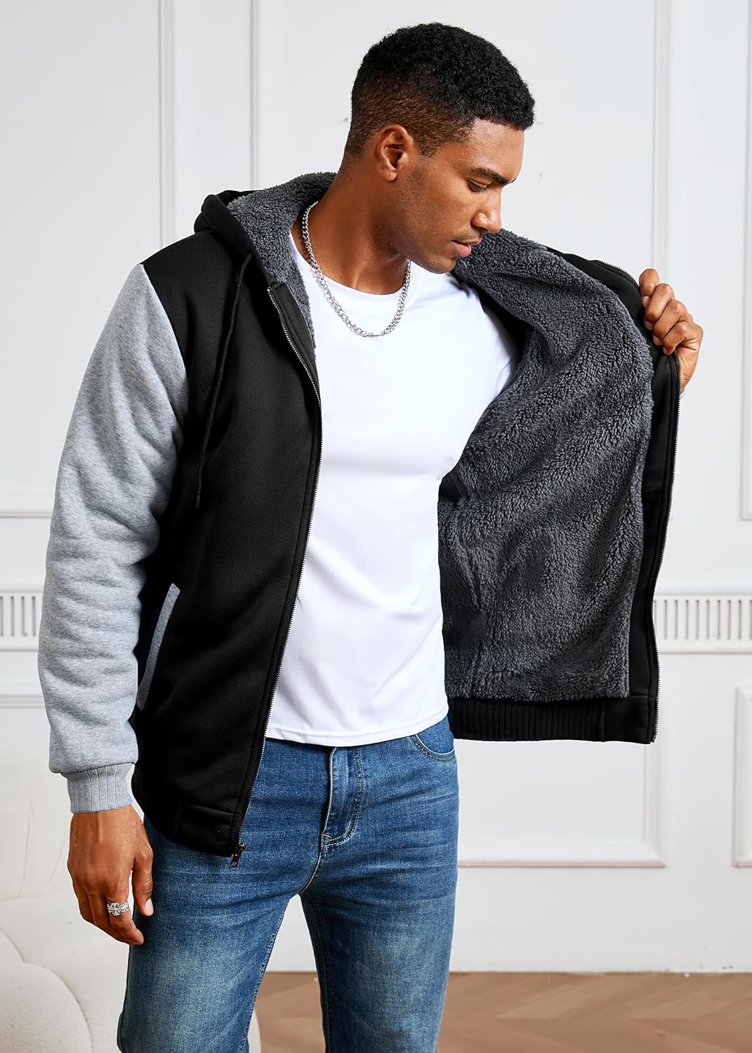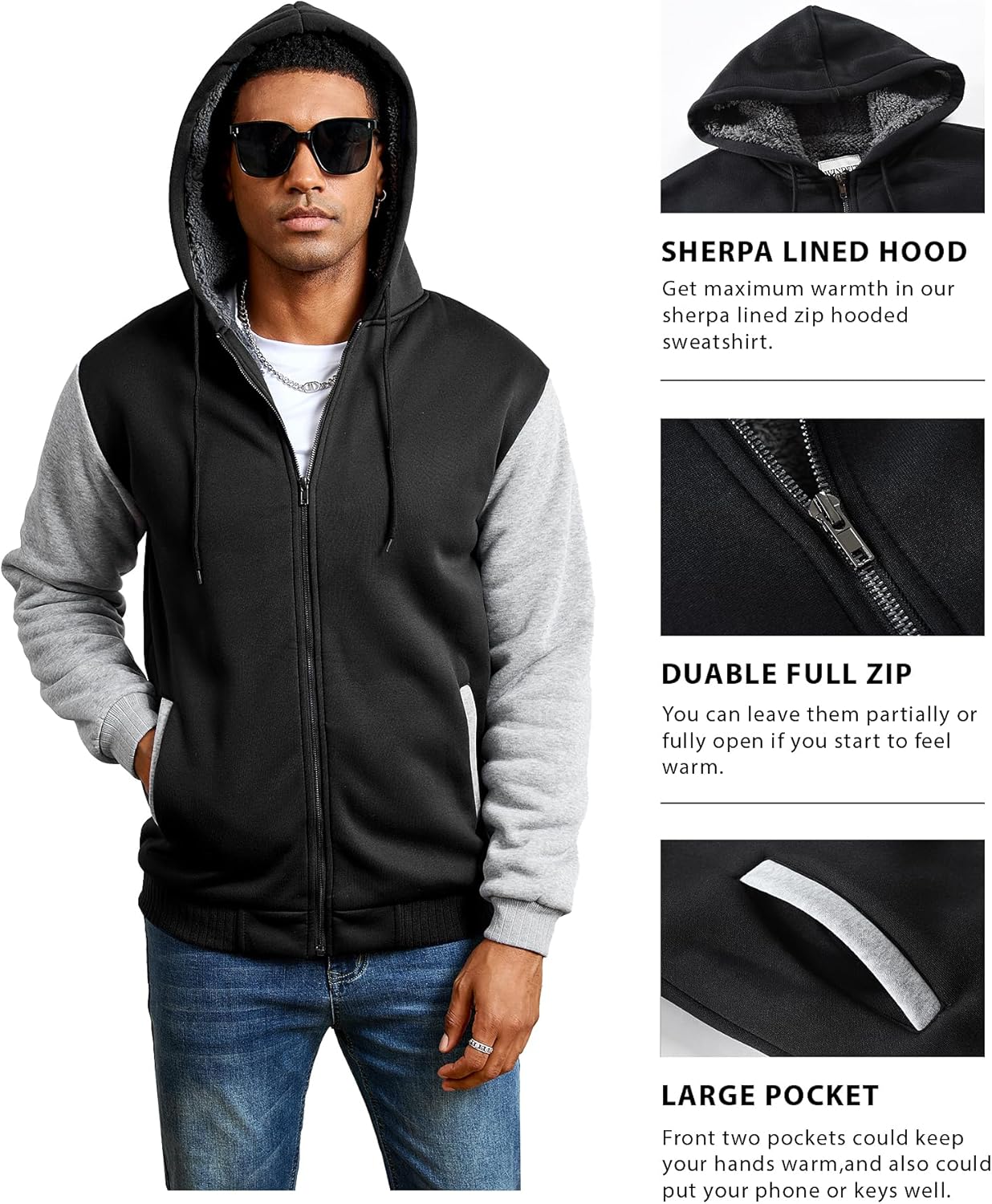 Inner Fabric: Thickened sherpa lining, blocking the cold and locking in the temperature, with a delicate and soft touch, suitable for wearing every day in the cold winter.