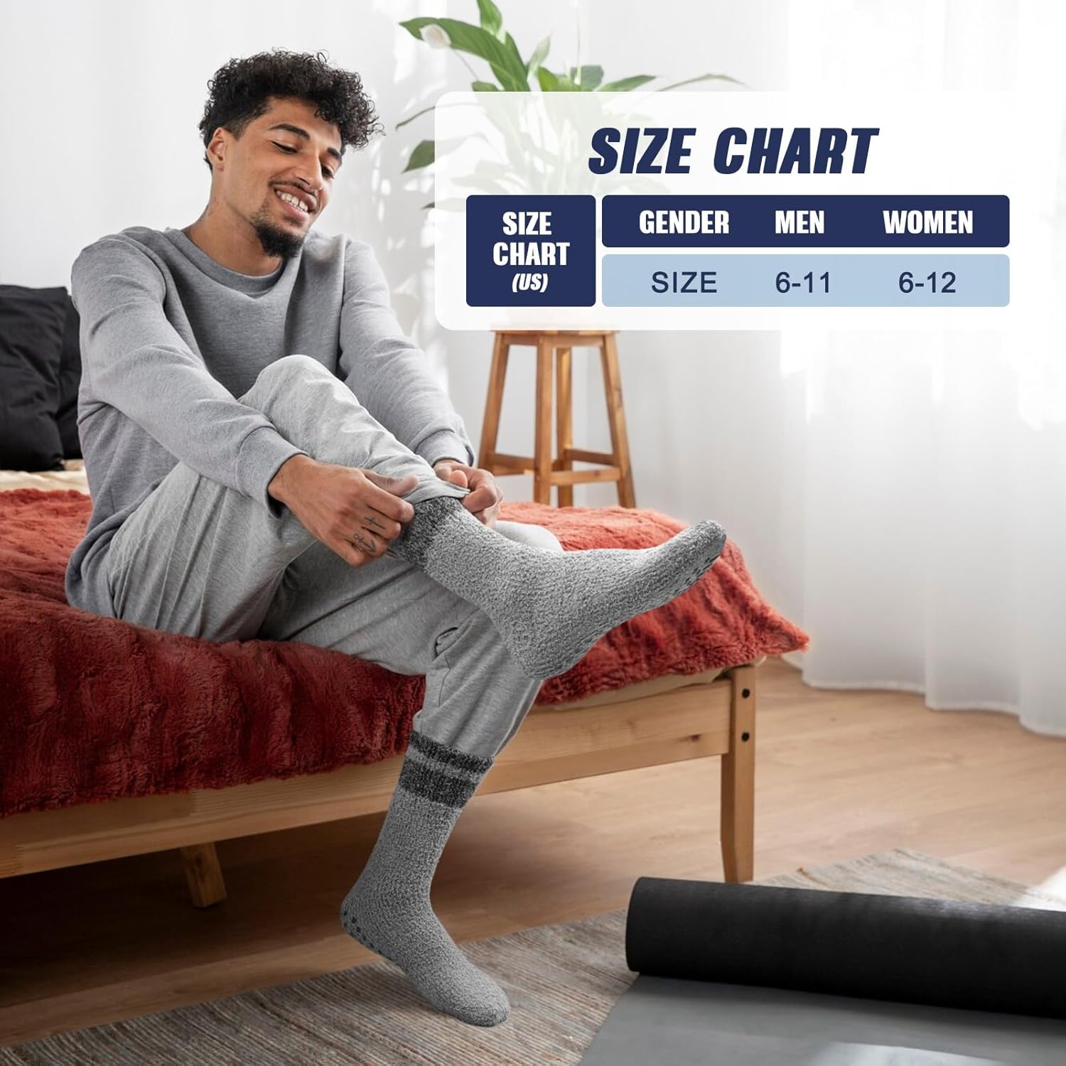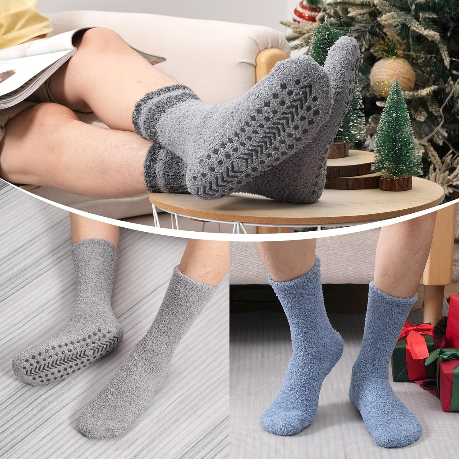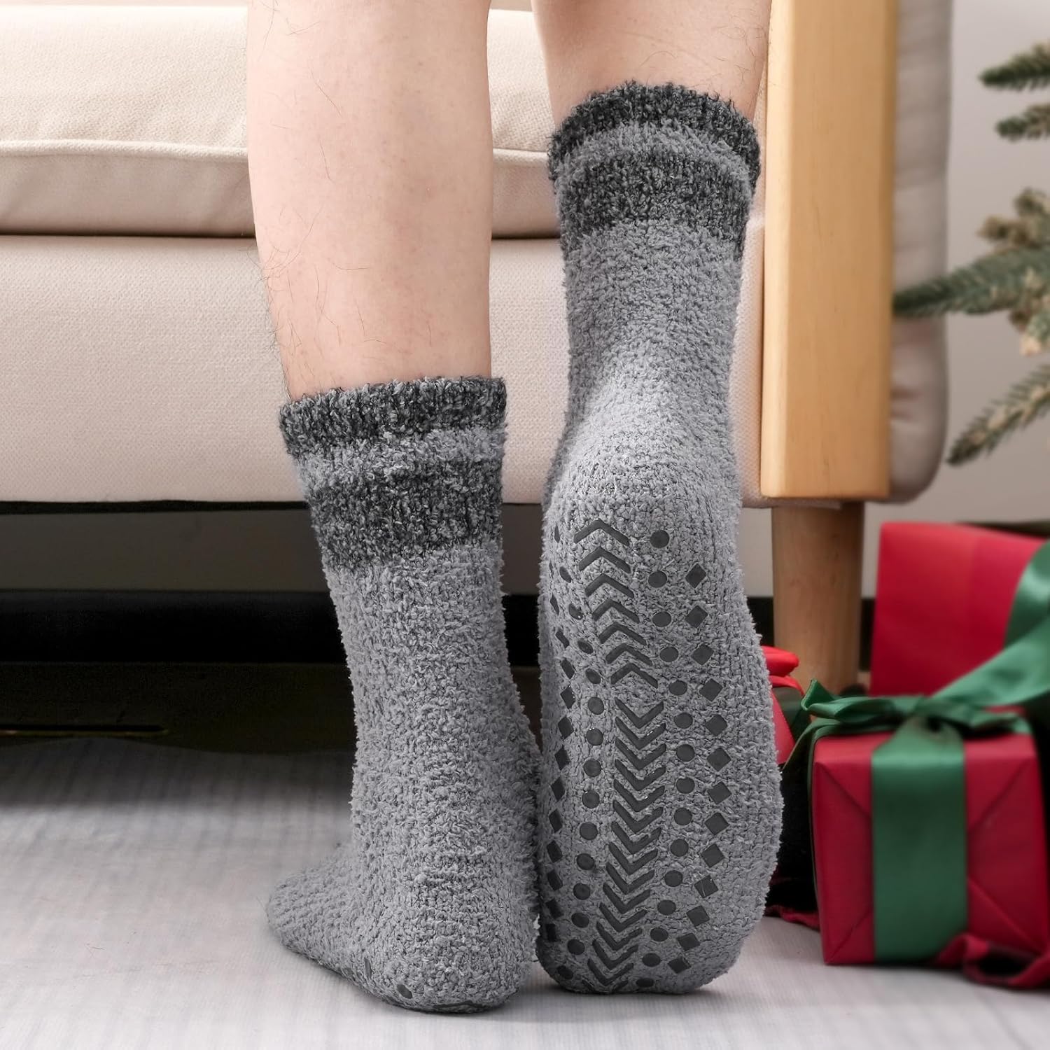 Slipper Socks for Men: Warm fuzzy socks men are made of premium fabric (polyester and spandex blended), super soft, thick, cozy and have a fluffy feel. Our cozy socks for men are thickened and lengthened which brings you a more comfy wear experience and make your feet warmer in cold holiday at home, they are also a perfect gifts for seniors
