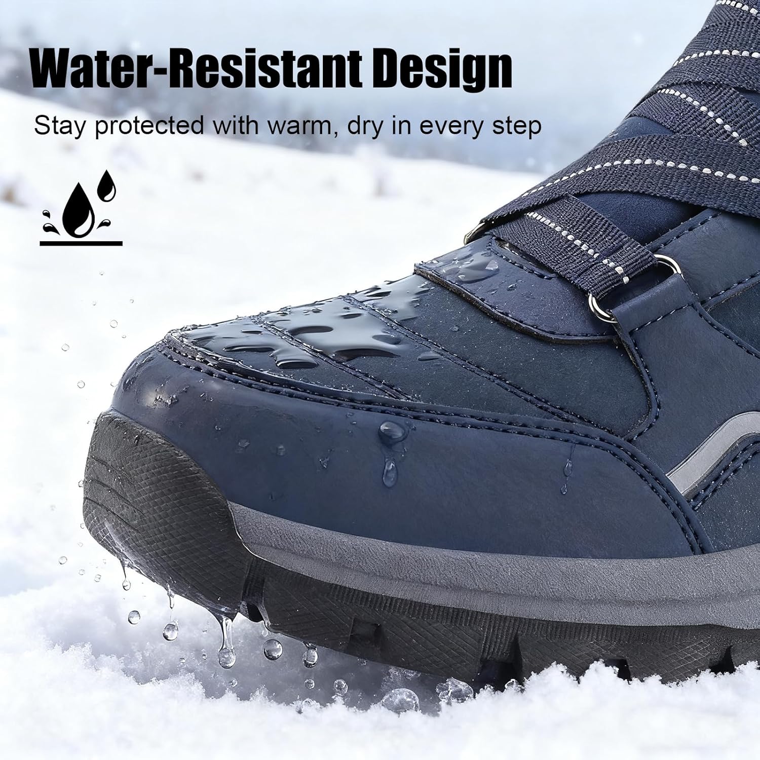 UPPER FOR DURABLE: The upper of men winter boots is made of water-resistan leather that easily cleaning up and water resistant that block snow rain into boots to a certain extent when you are doing outdoors