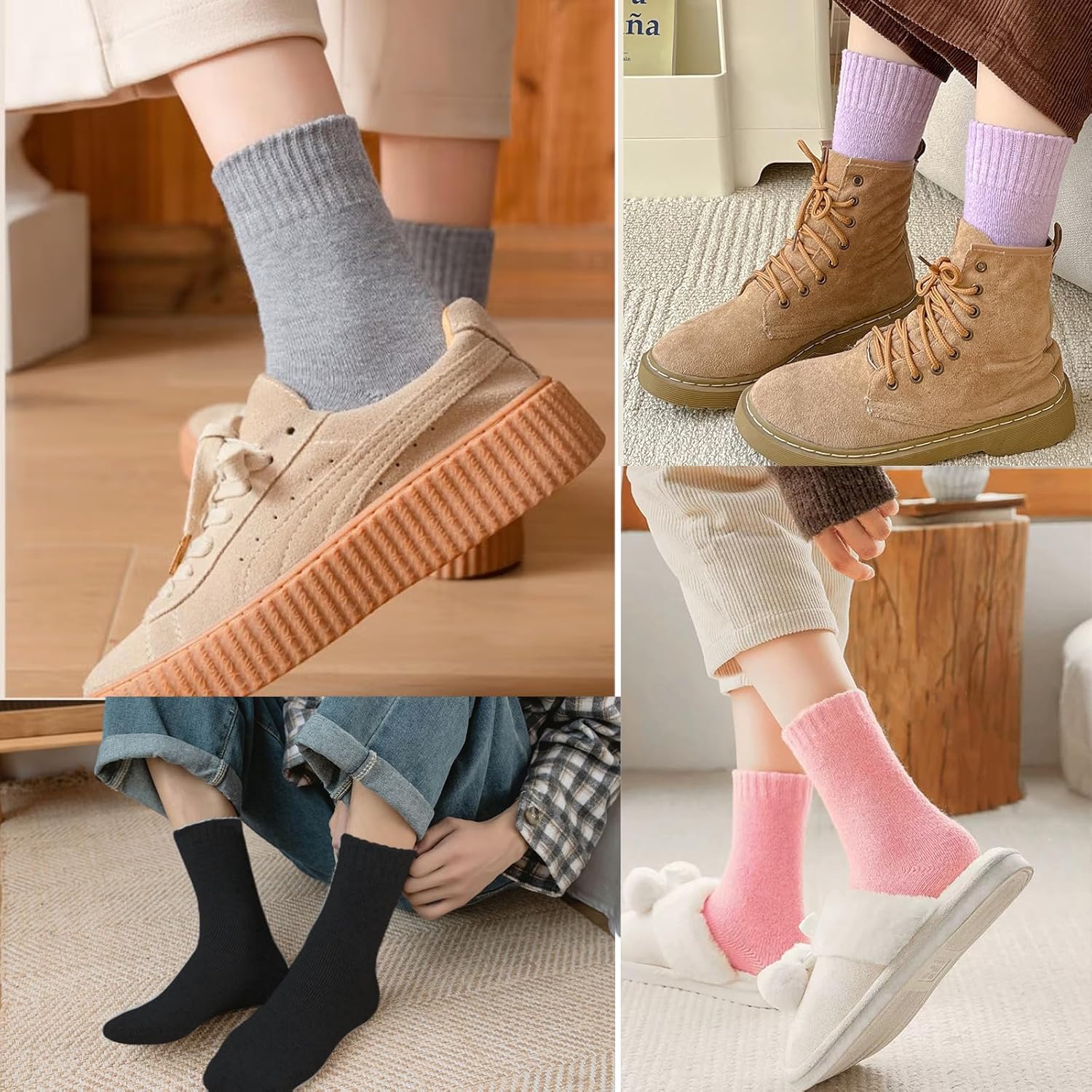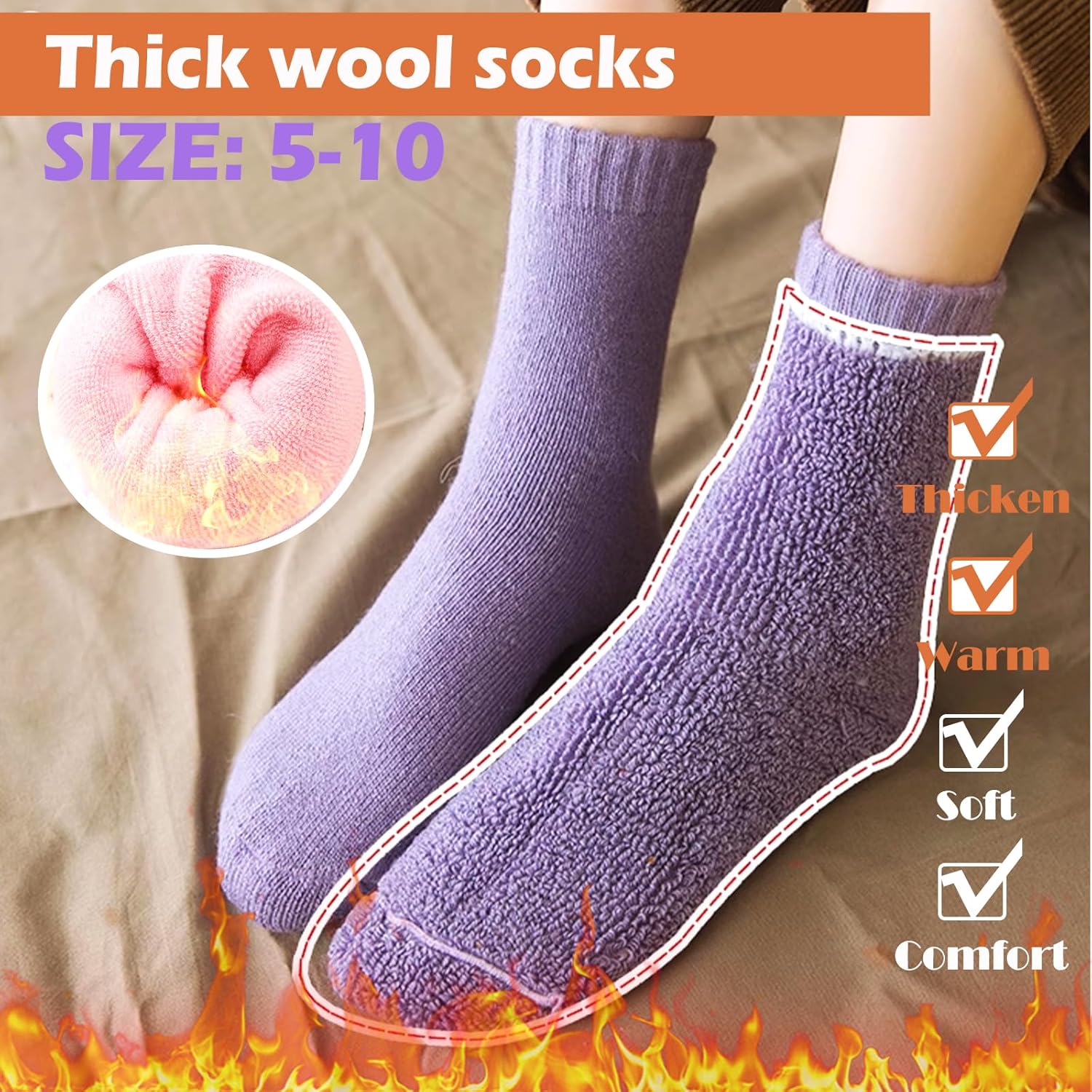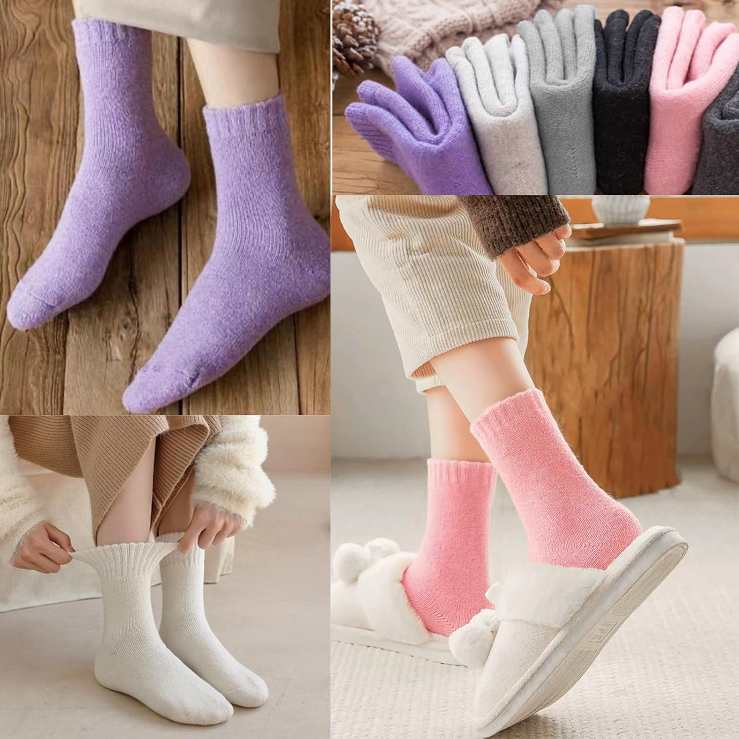 Super Warm Wool Socks for Women: Made of premium wool and polyester blend, these women's thermal socks provide exceptional warmth and comfort in cold winter. Keep your toes toasty all day long!