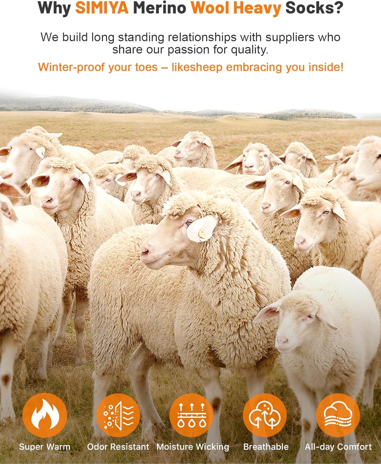 Are They Comfortable? Anti-blister Marathon Comfort in every pairs. SIMIYA merino wool socks for men made with breathable, moisture-wicking merino wool that keeps feet dry, odor-free, and itch-free. Enjoy all-day comfort with natural temperature regulation, the thermal socks for men will keep your feet warm in winter and cool in summer. 5 Pairs warm socks for men are a perfect gift for him