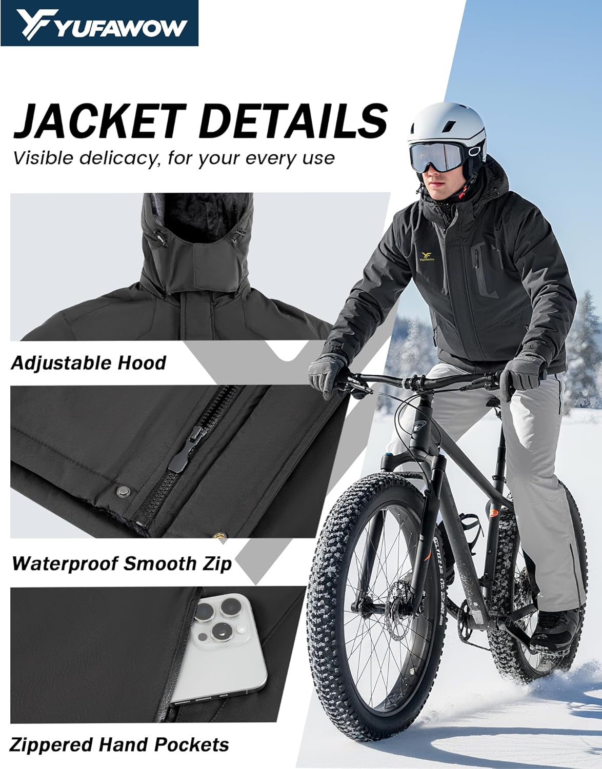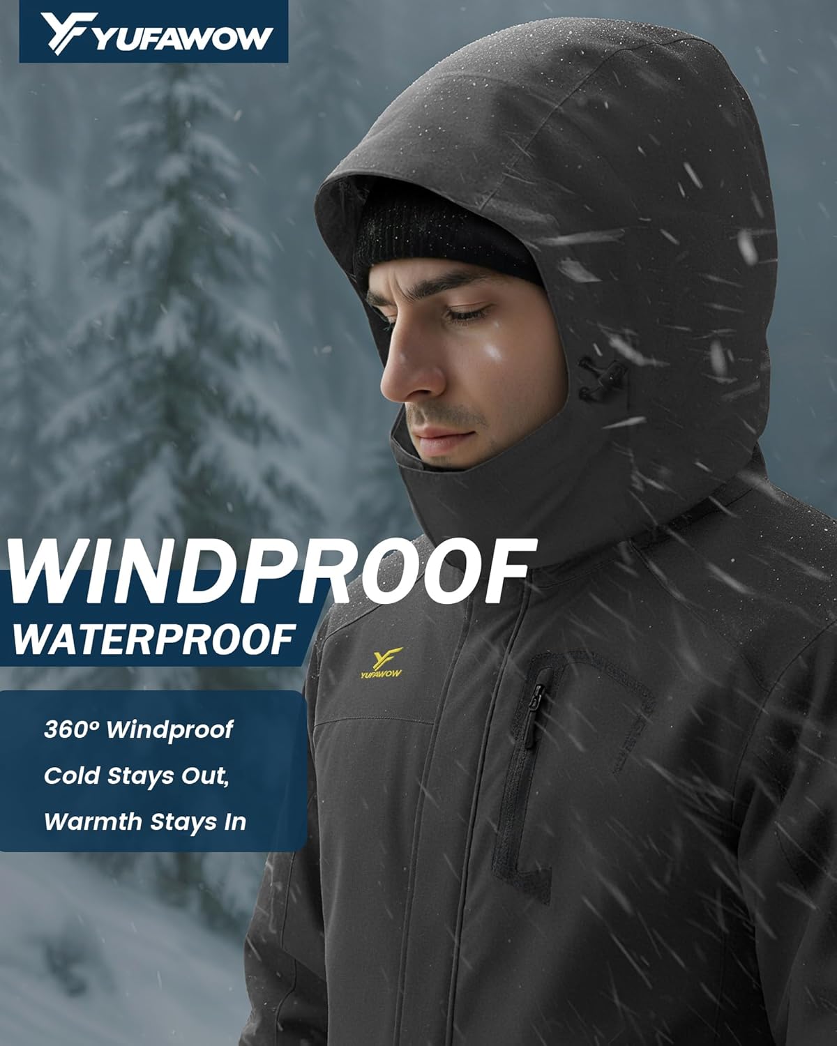[Premium Windproof & Waterproof Fabric]:Constructed with a triple-layer performance shell,featuring a water-repellent outer coating and windproof membrane to block snow, rain, and icy winds. Whether on snowy slopes or in cold urban streets,this jacket keeps you dry,warm,and fully protected