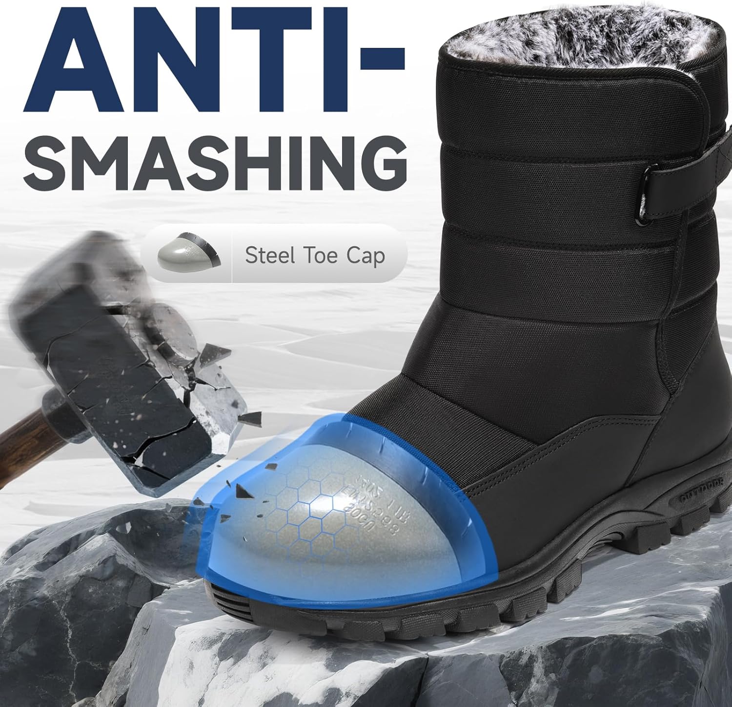 ANGRYRAM Winter Steel Toe Boots for Men Comfortable Insulated Warm Slip on Snow Boots Non Slip Puncture Proof Men's Safety...
