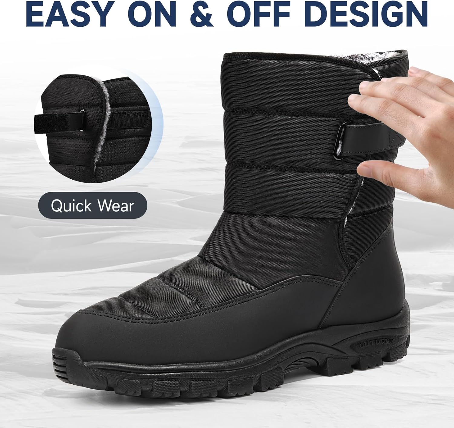 Easy Velcro & Buckle Closure:Designed with velcro straps and buckle closures, these slip on snow boots are easy to put on and take off. The adjustable fit makes them comfortable for all-day wear at work or outdoors.