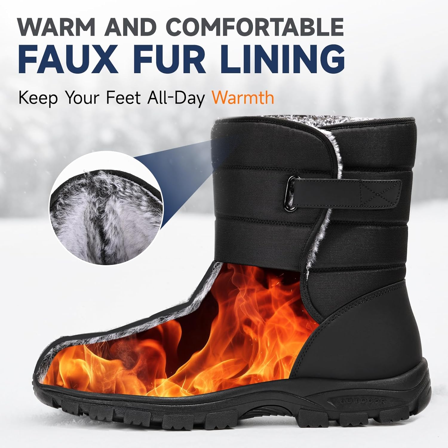 Anti-Slip Rubber Outsole:These non-slip snow boots have a strong rubber sole that gives excellent grip on snow and ice. Great for outdoor work or walking in slippery winter conditions, helping you stay steady and safe.