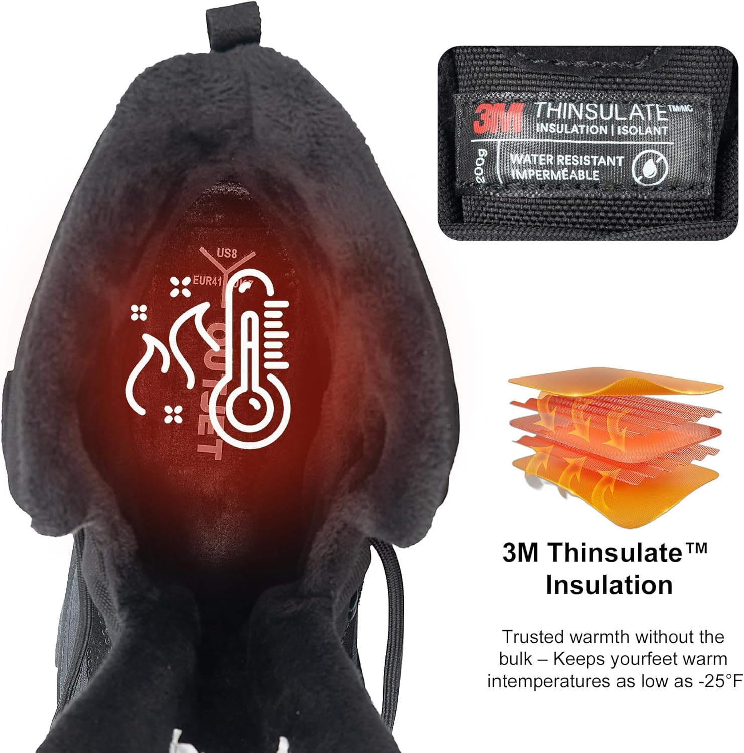 【Advanced Warmth Technology】Features 200g 3M Thinsulate insulation that locks in body heat, keeping your feet warm and dry even in extreme cold as low as -25°F. No more freezing toes during snowy days or outdoor adventures
