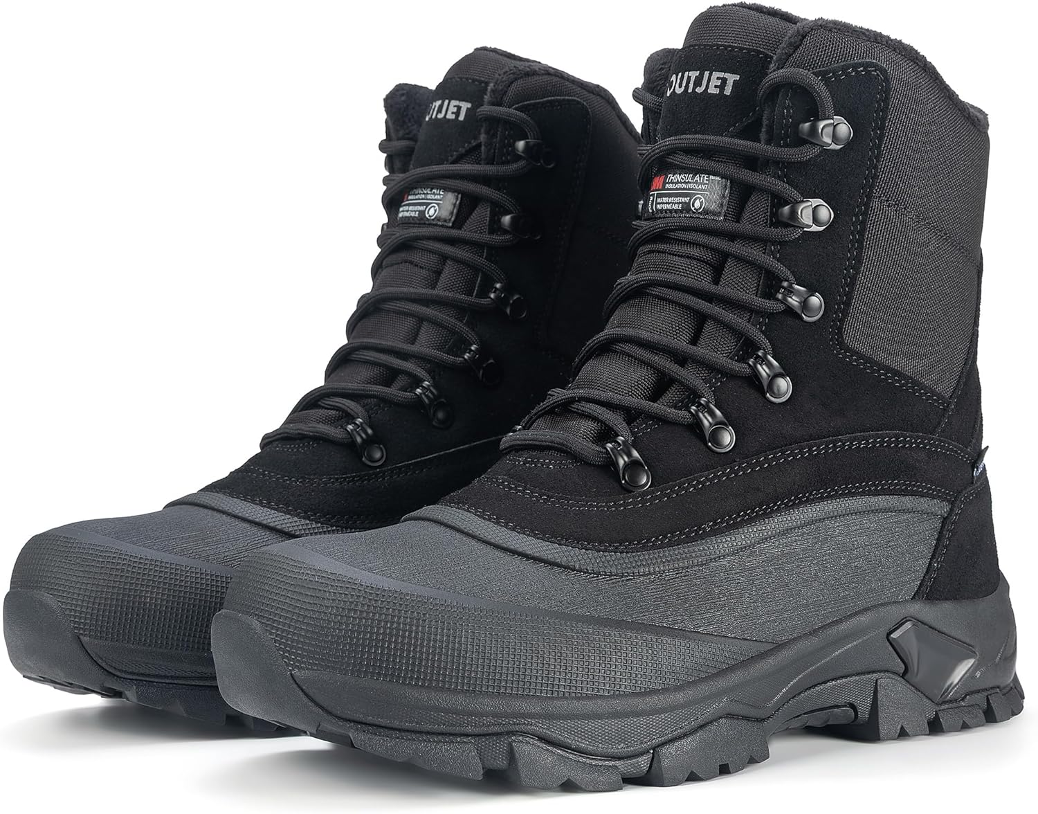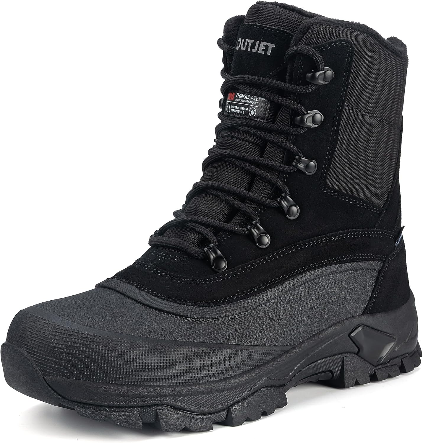OUTJET Men's Insulated Snow Boots Winter Waterproof Warm Fur Lined Boot