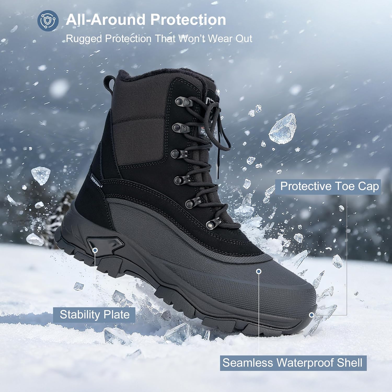 【All-Weather Protection】Built with a fully waterproof membrane and wind-resistant construction, these boots create a reliable barrier against snow, slush, and biting winds. Stay dry and comfortable in harsh winter conditions