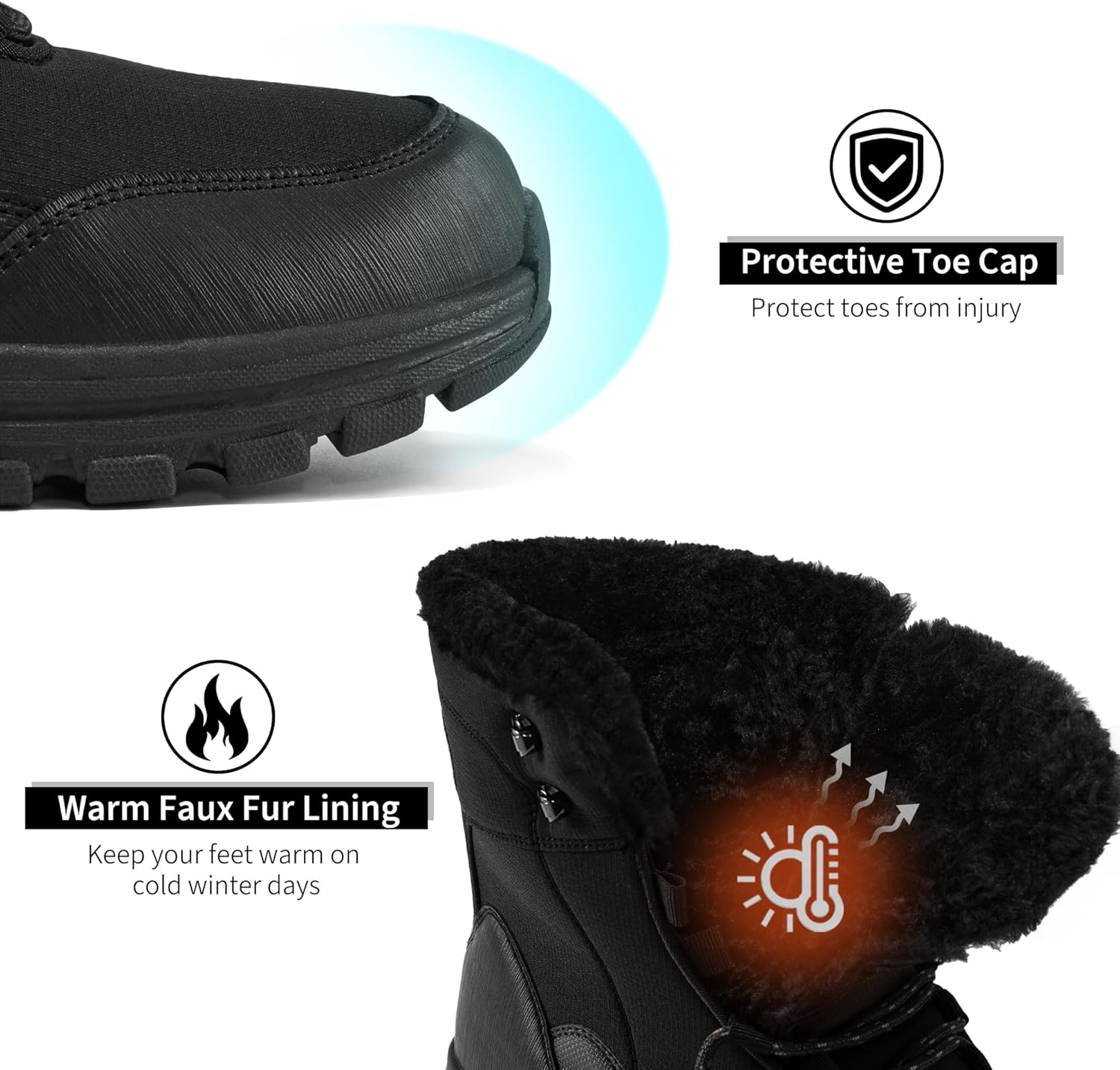 Design: Snow boots for men feature a lace-up design for adjustable and secure fit. Anti-collision toe cap protects the toe from injury. The padded neckline provides strong ankle support and prevents sprains. Snow boots, winter boots