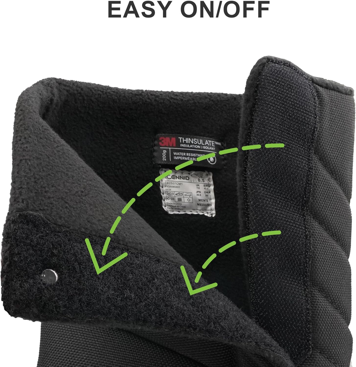 Warming system: 200g premium 3M Thinsulate teams up with a warm, insulated lining to keep feet cozy and dry—even at -25°F. The Thinsulate locks in heat, while the lining fends off bitter chill, wrapping toes in a toasty barrier against the cold.